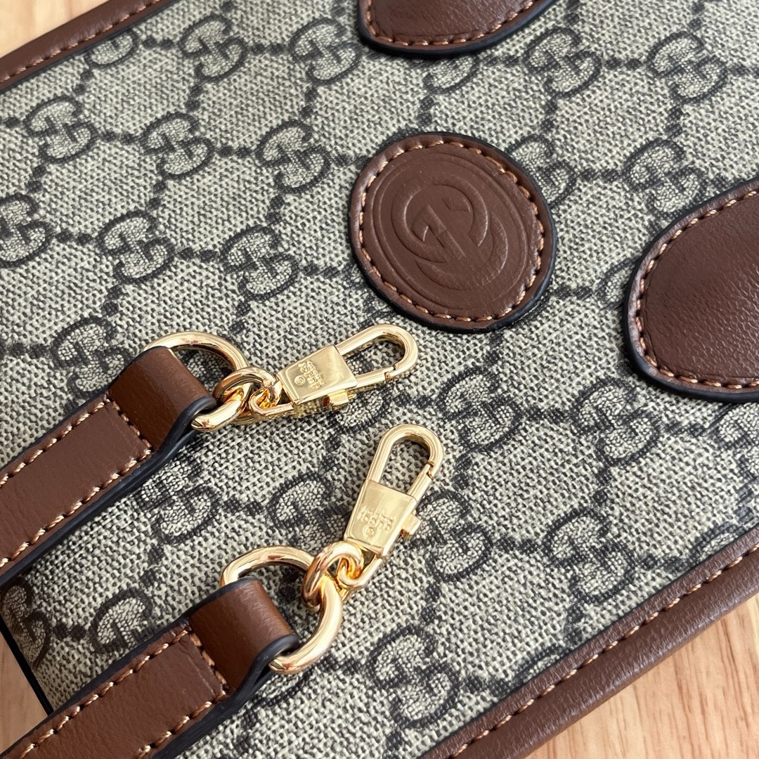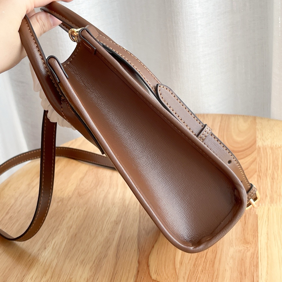 The familiar symbols of the brand and the leather paper section are blended together to make this tote bag the center of attention. The classic double C's are interwoven into the canvas material, giving the design a strong brand identity. Size:16x20x7cm