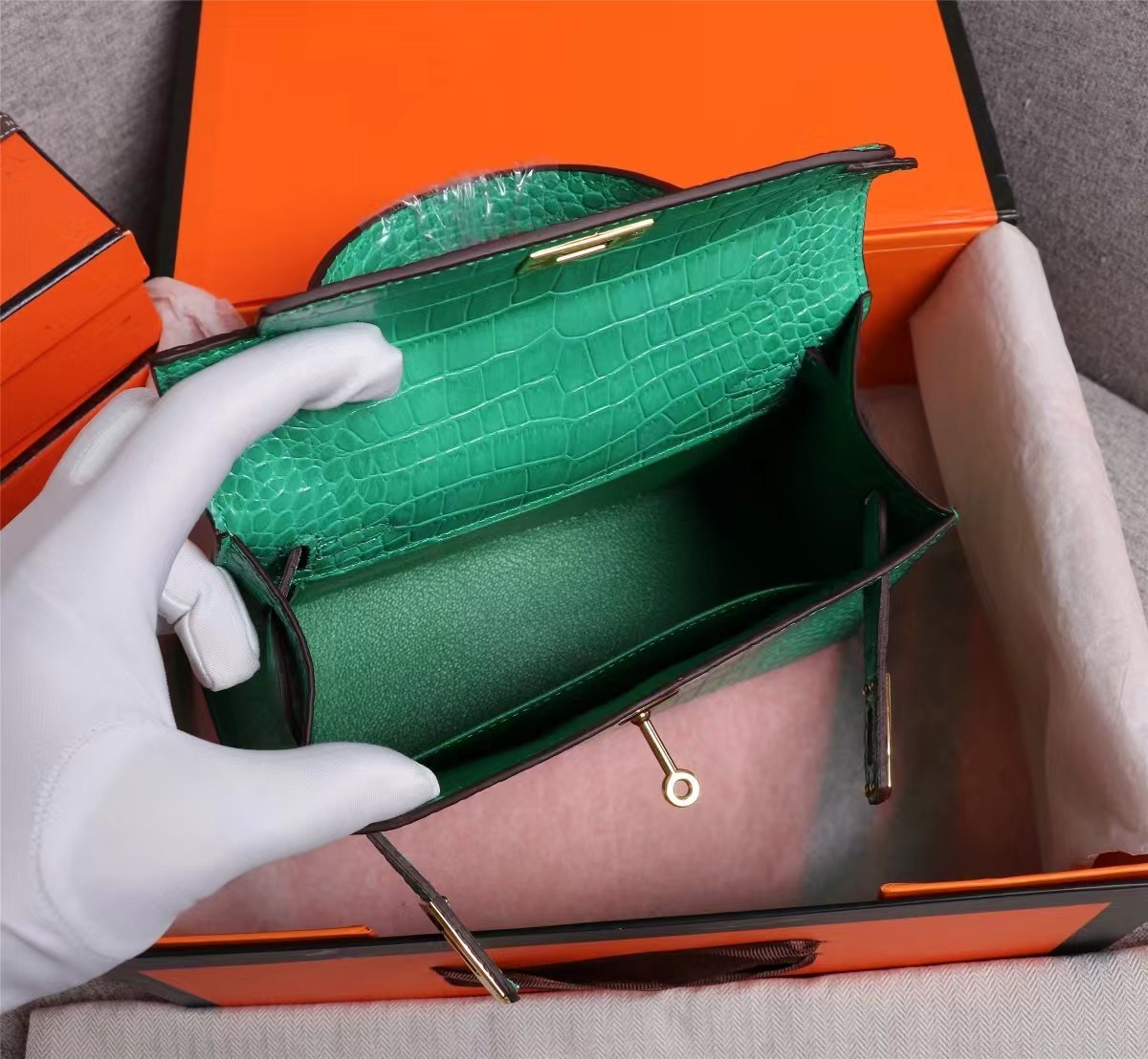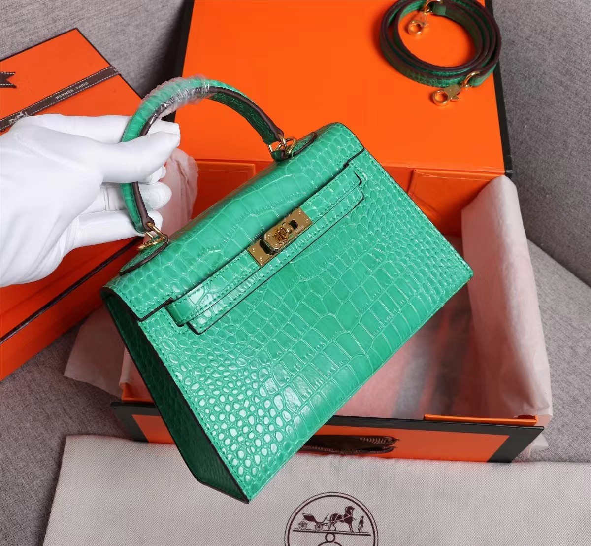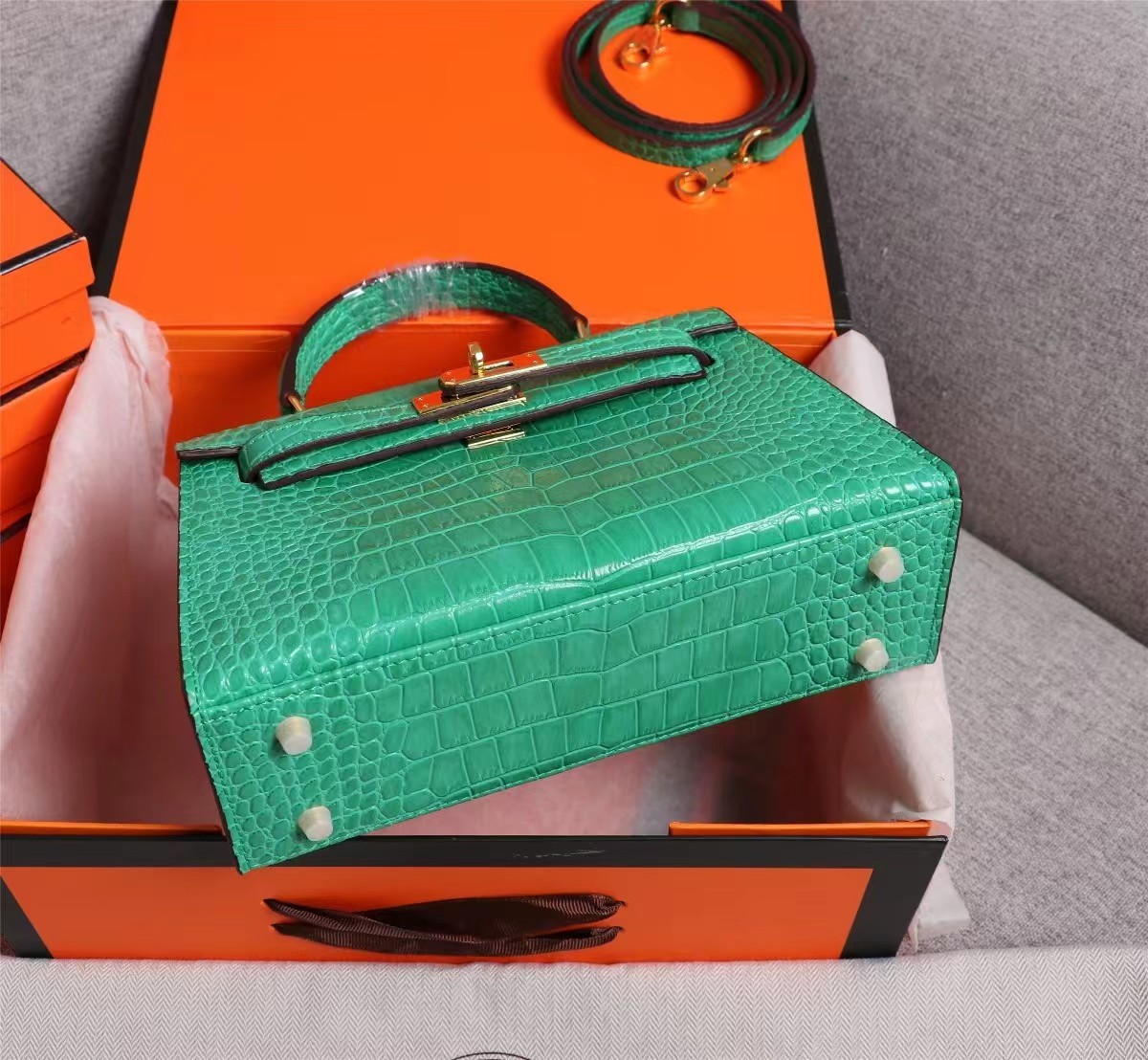 • Hermes Kelly Gold Buckle Bag-Crocodile