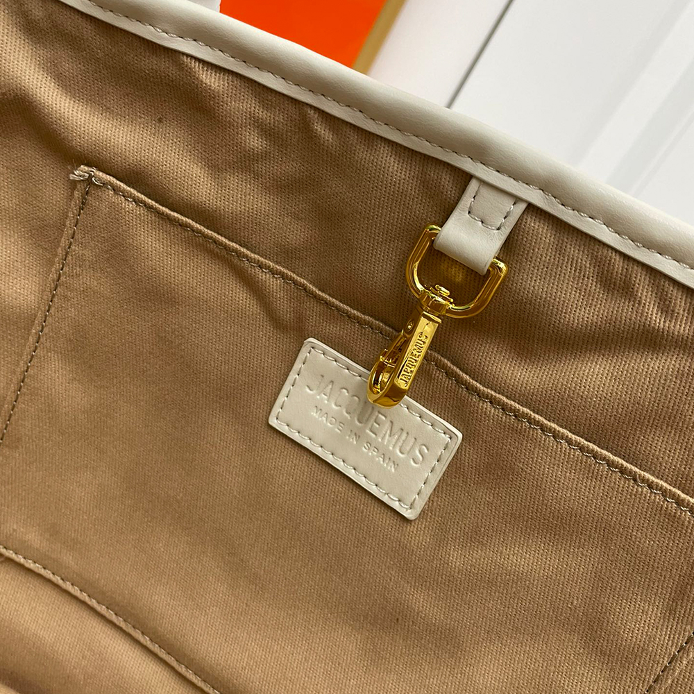- Gold metal logo and studs