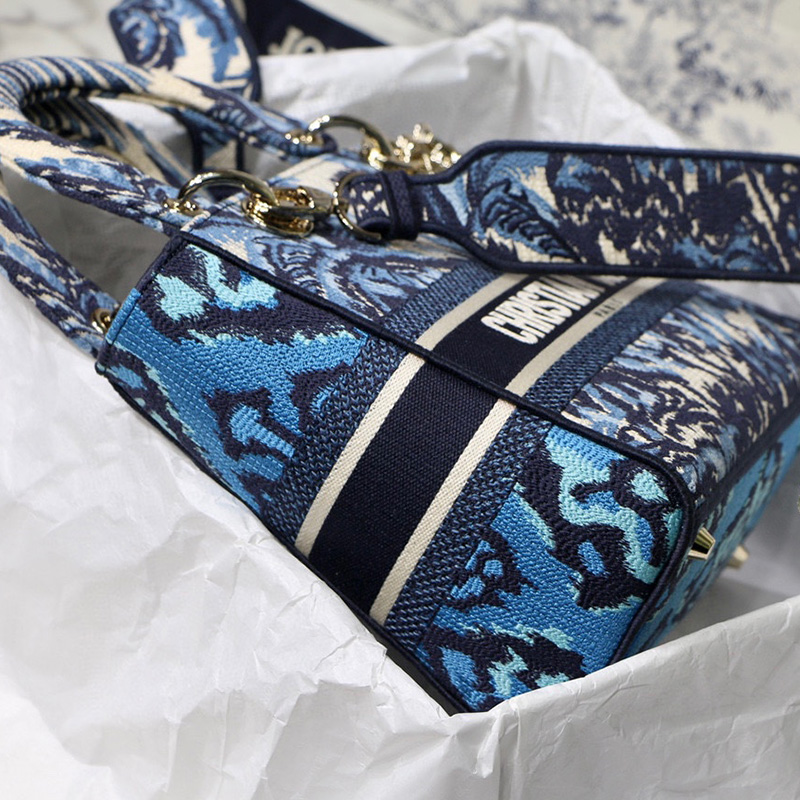 Dior The LADY D-LITE Bag Blue Dior Palms Embroidery M0565OREU_M928