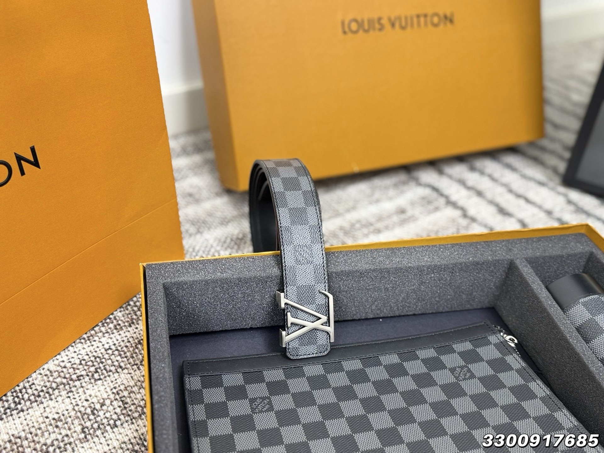 LV Belt + Handbag + Water Bottle Three-Piece Set Damier Black