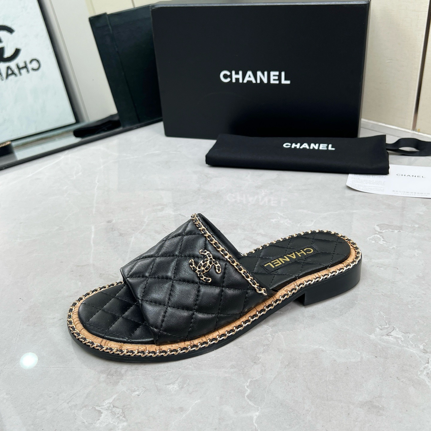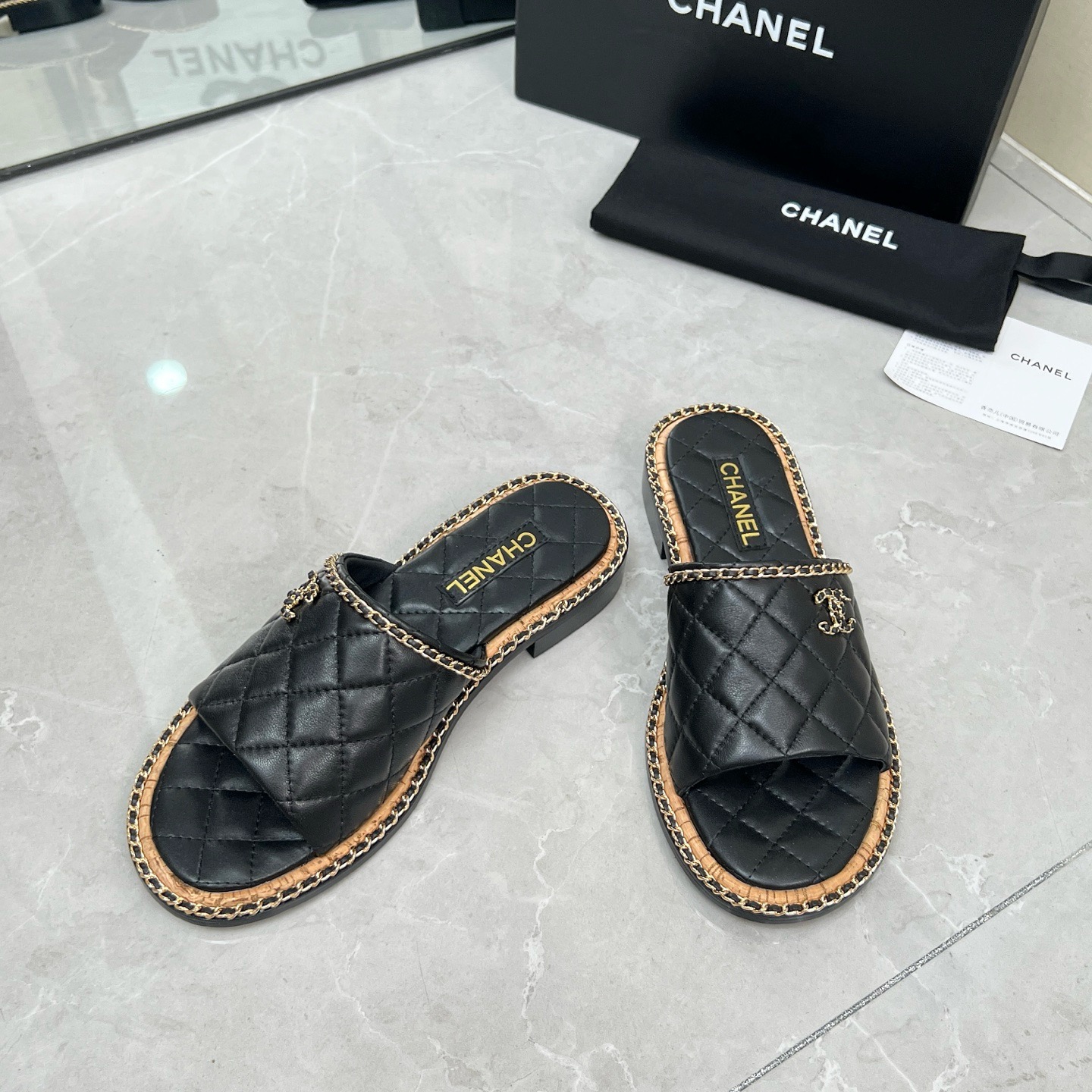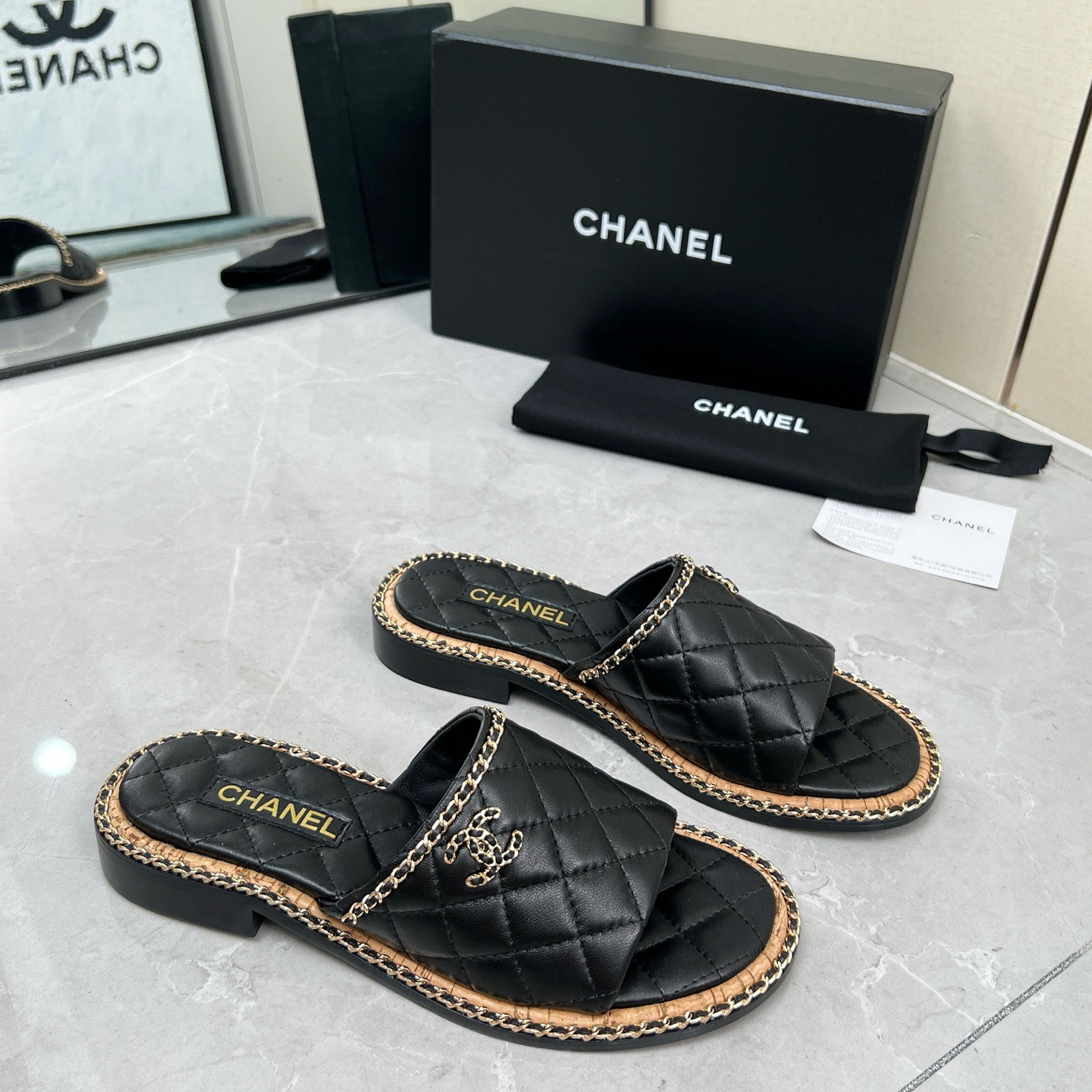Chanel black leather sandals