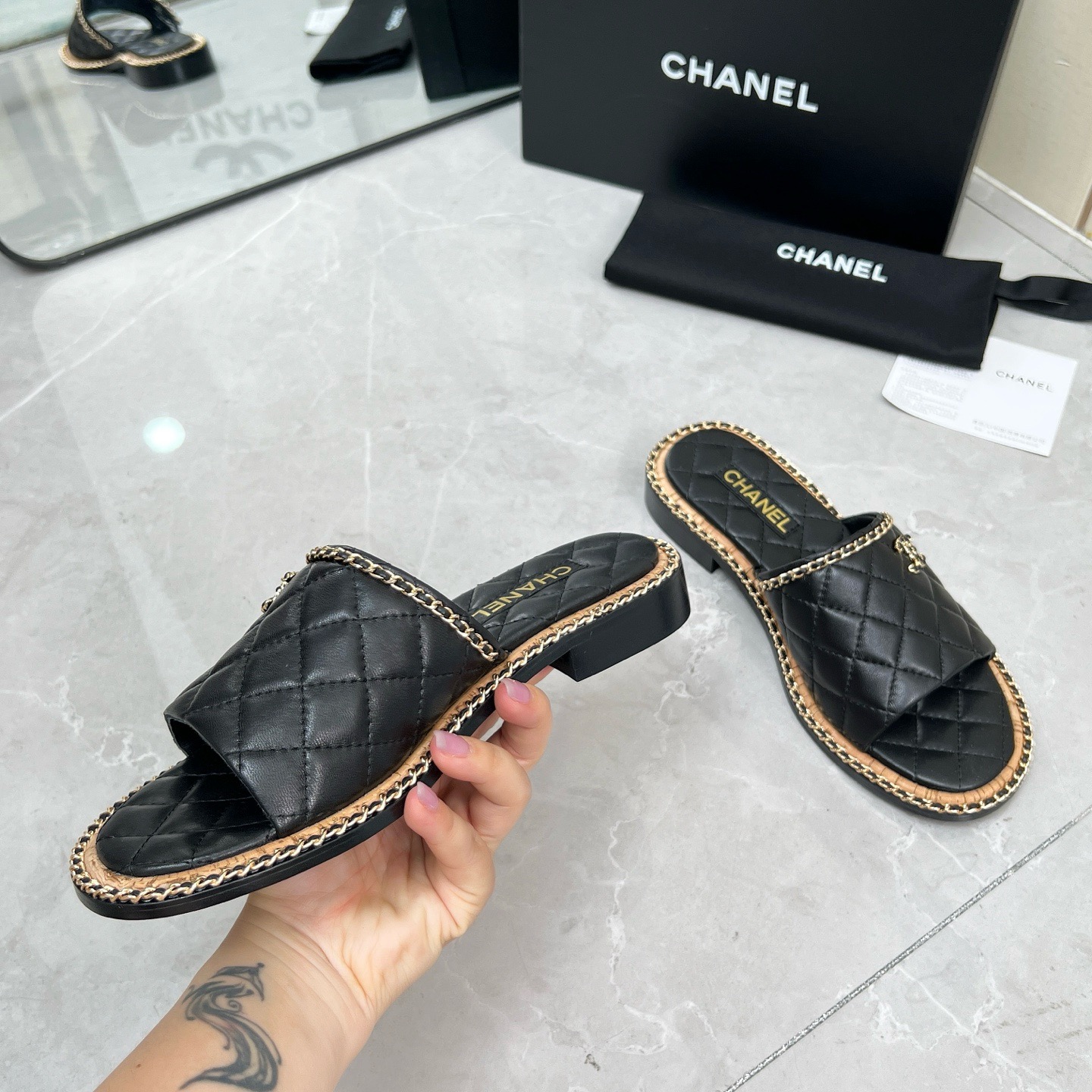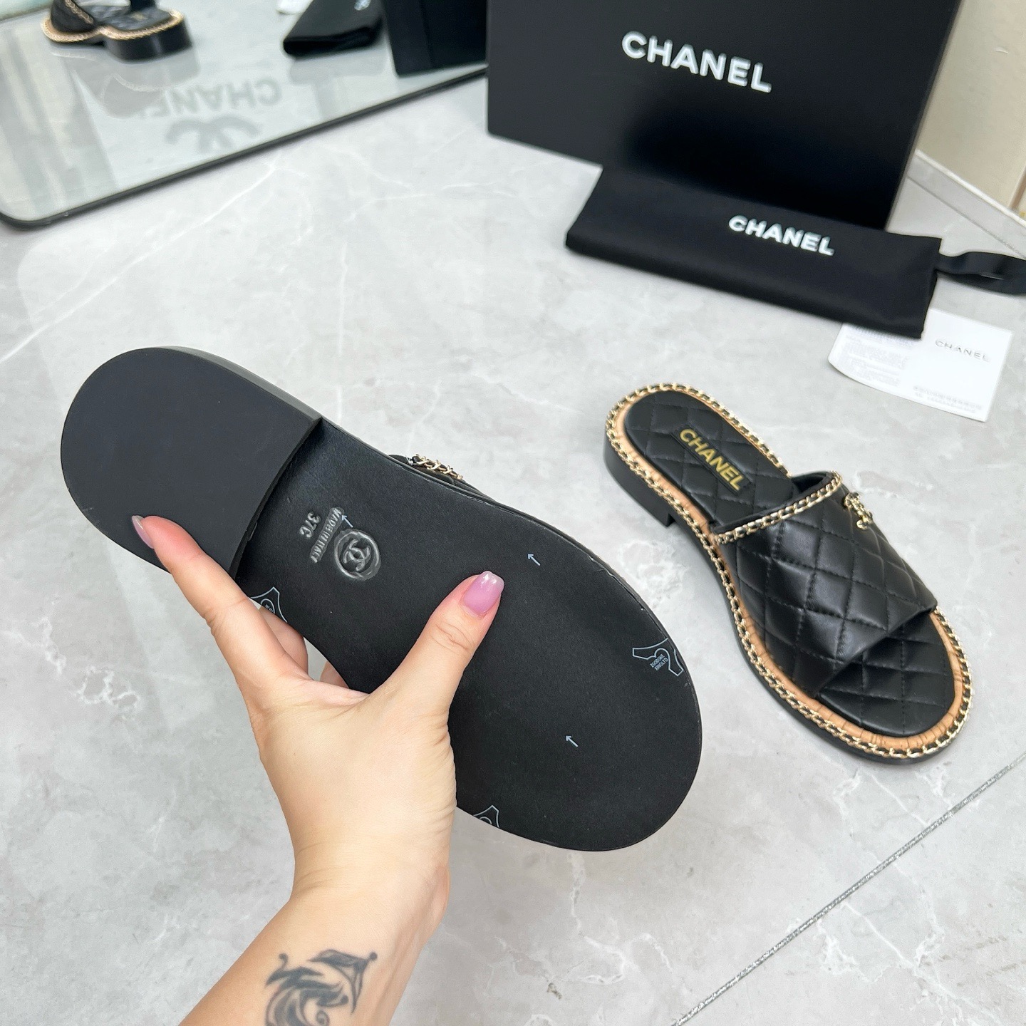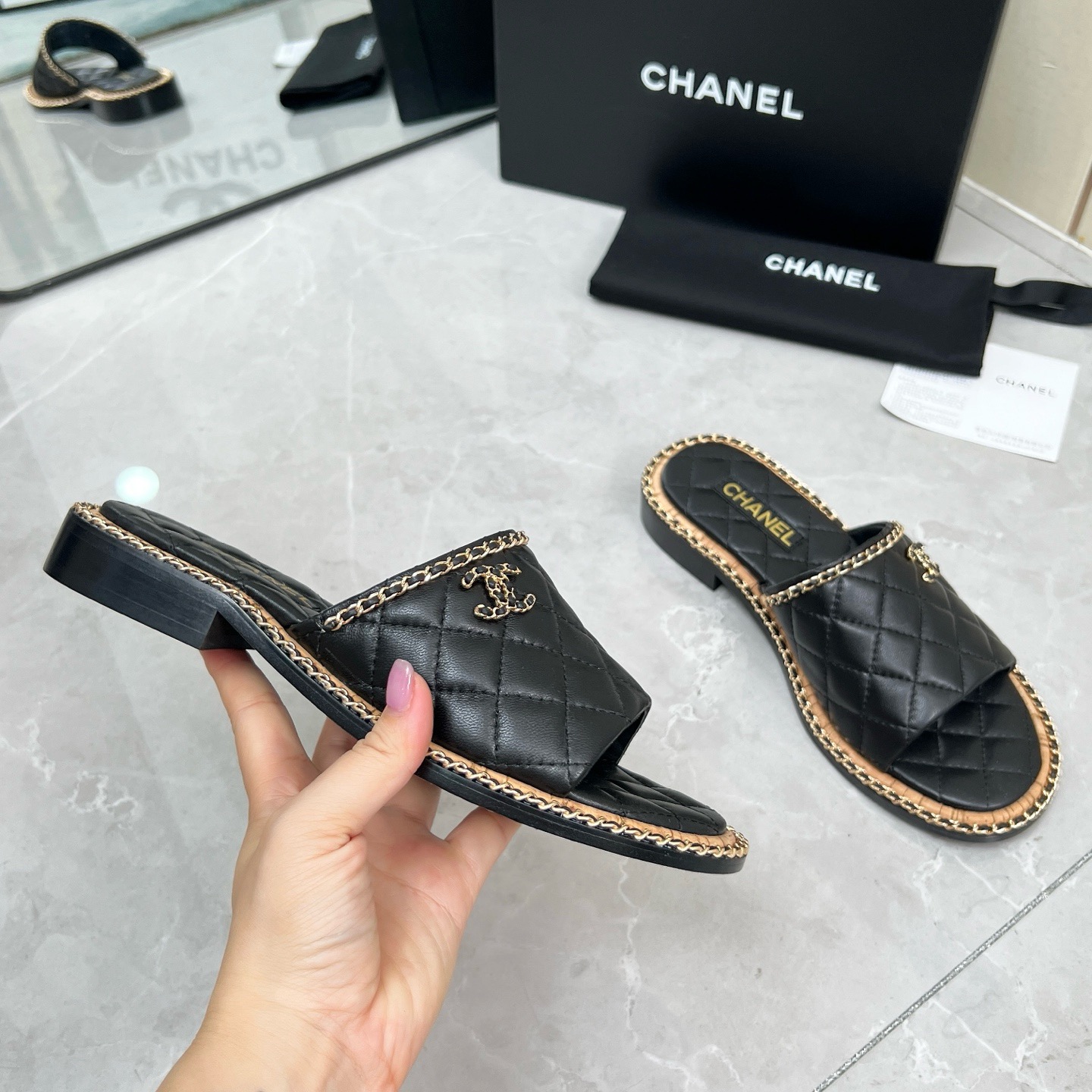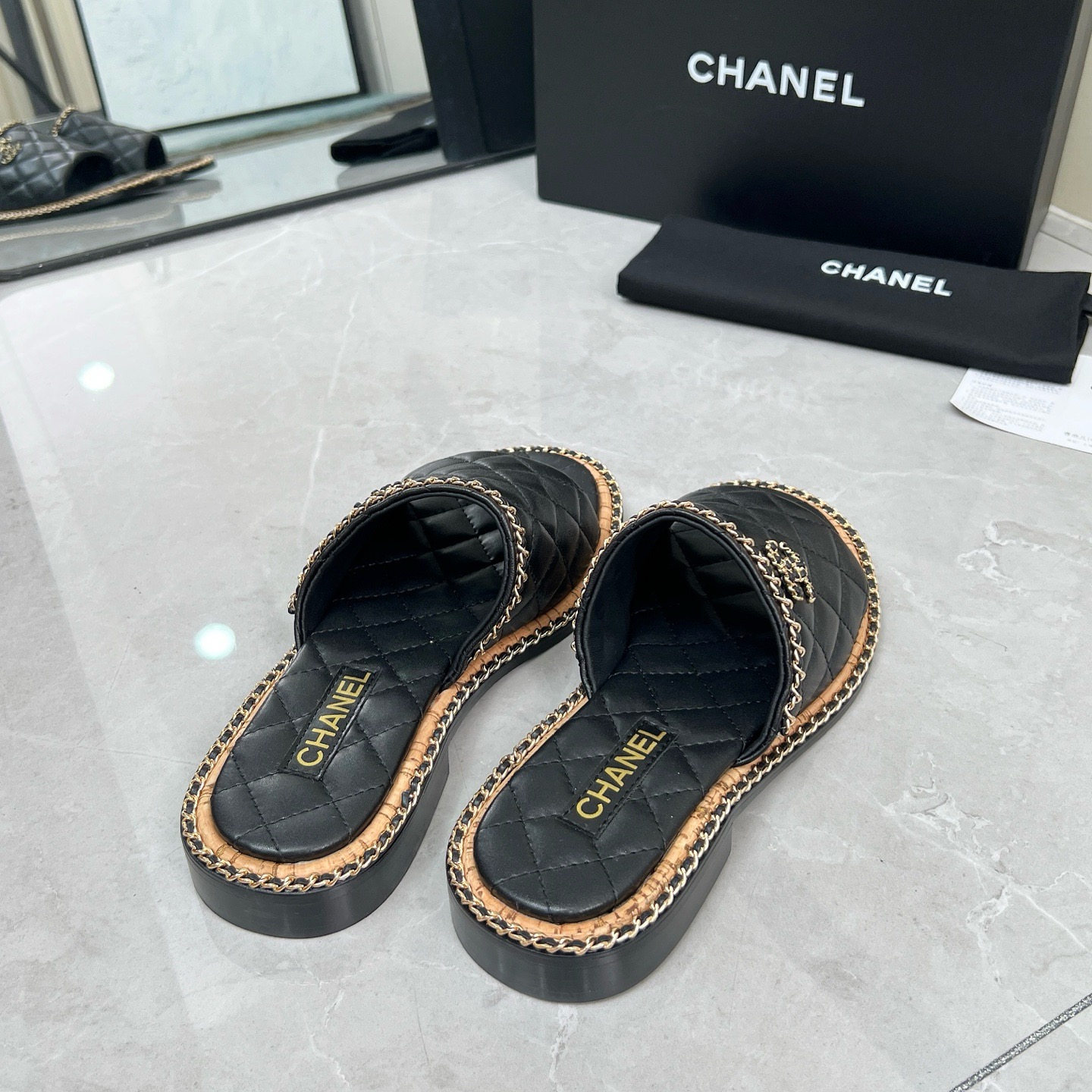 Chanel black leather sandals
