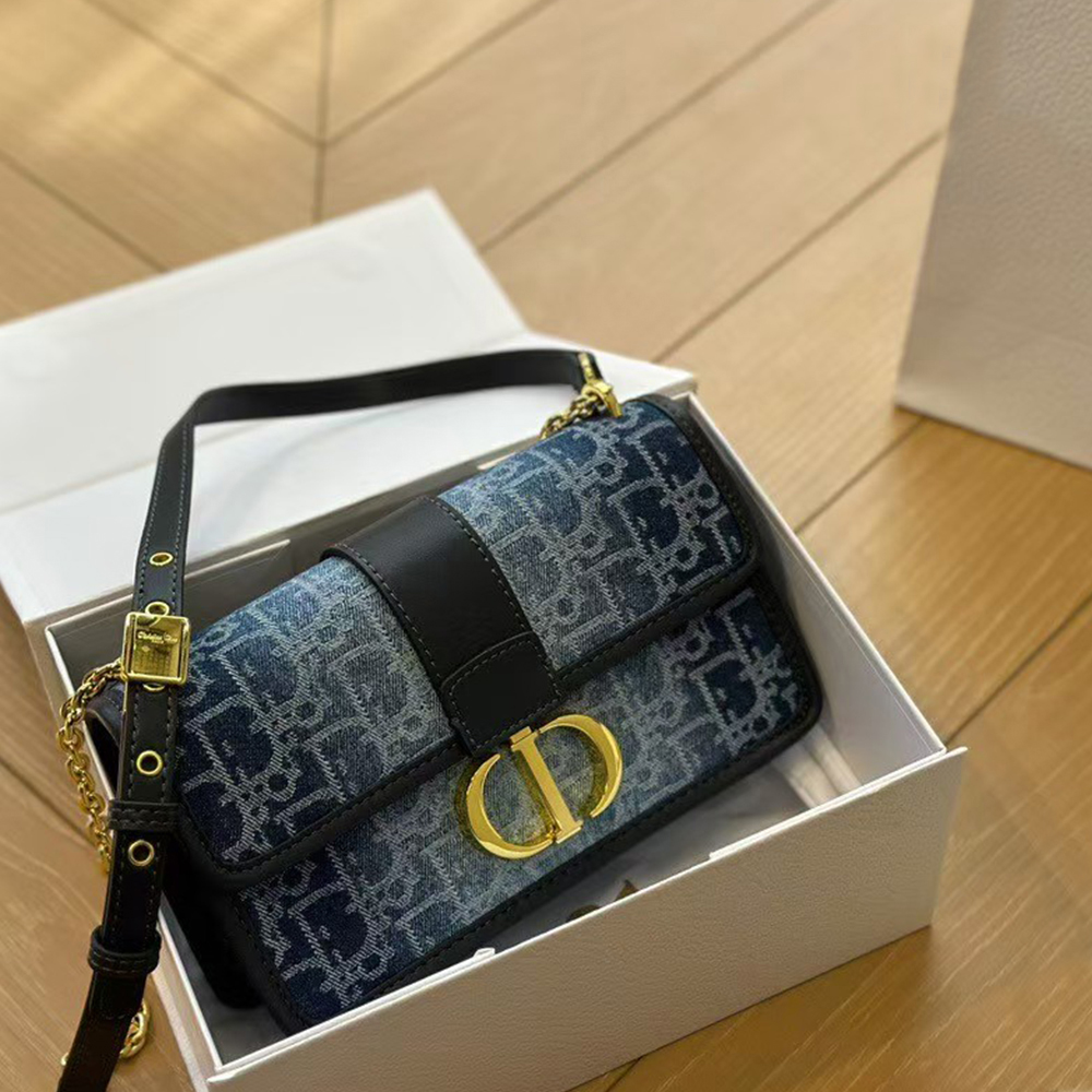 DIOR Oblique 30 Montaigne Flap Denim Bag