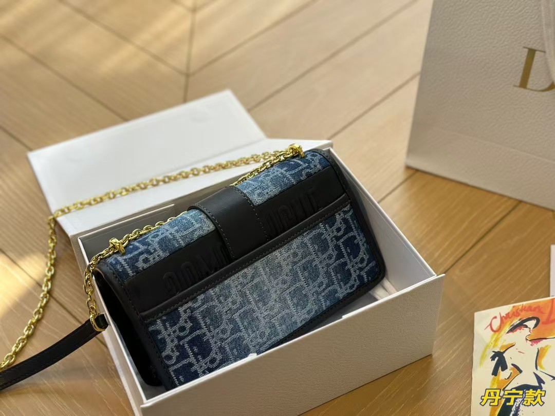 DIOR Oblique 30 Montaigne Flap Denim Bag