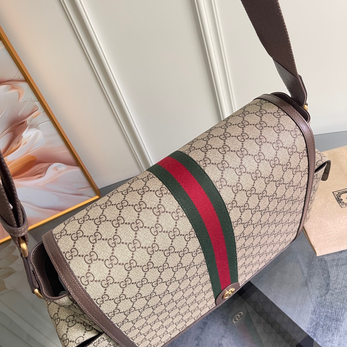 Gucci Large Changing Bag in Beige and Dark Brown