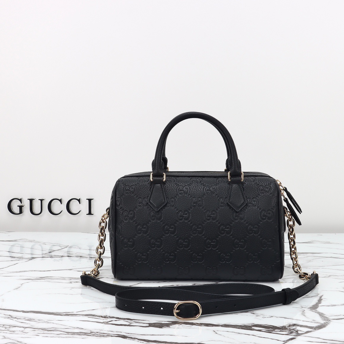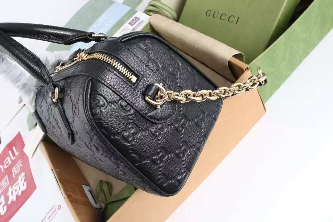 Gucci GG Emblem Medium Boston Black Top Quality