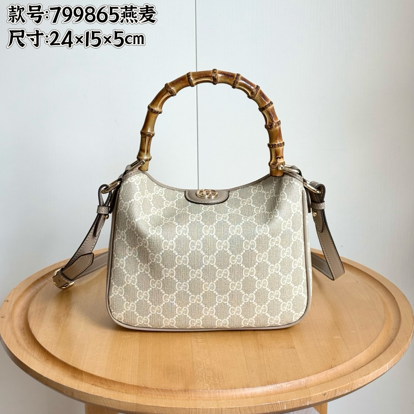 Gucci GG Emblem Mini Bag in Beige and White GG Fabric