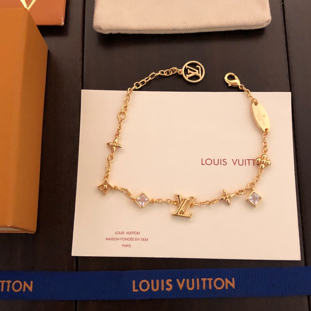 The LV In The Sky necklace is a dazzling constellation of classic elements. The LV letters and Monogram flowers shine on the brass chain, and the LV Circle logo adds a touch of brand flavor, slowly exuding a contemporary charm.