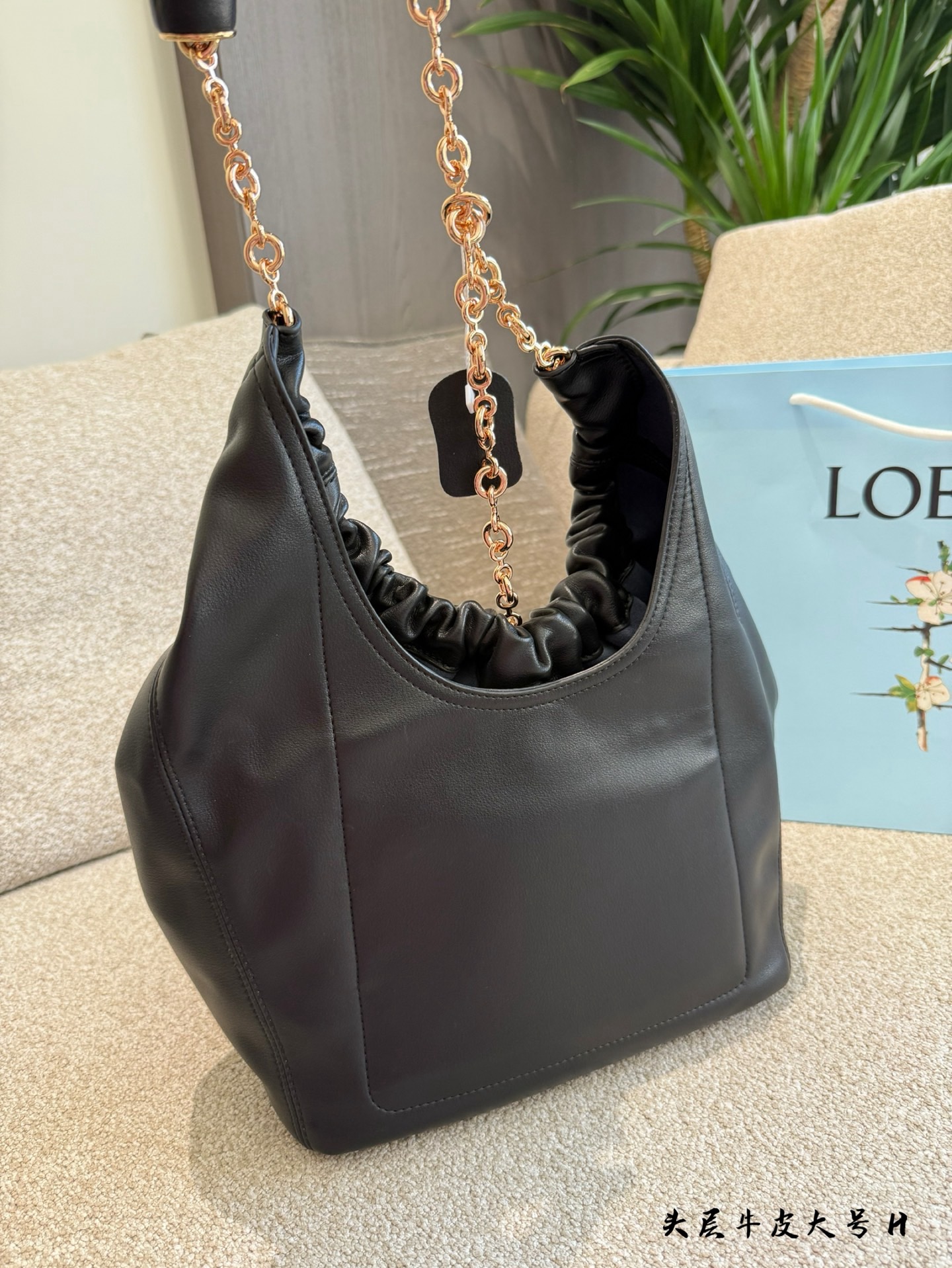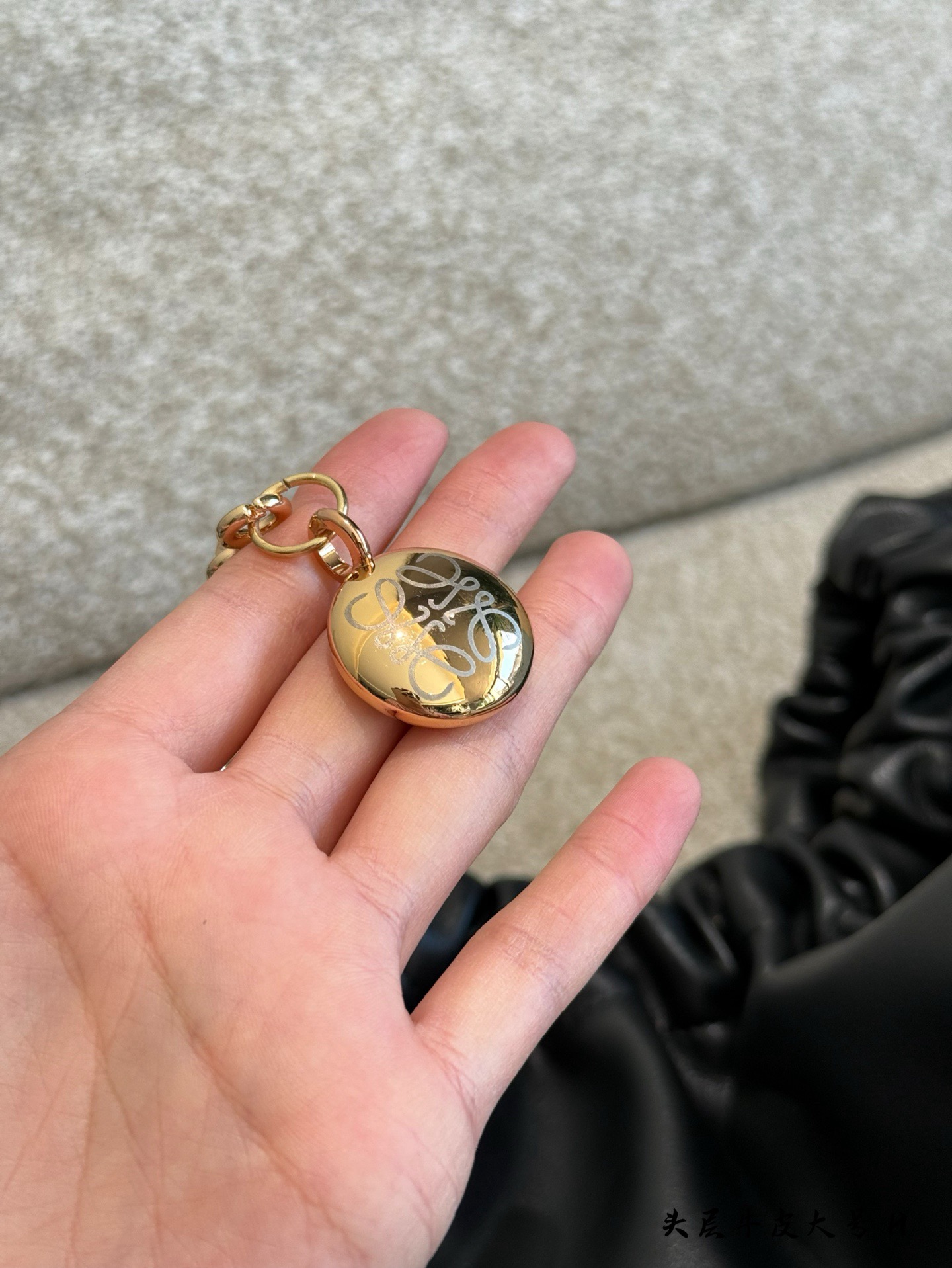 Pebble pendant on the bottom of the chain adds dynamic detail to the bag