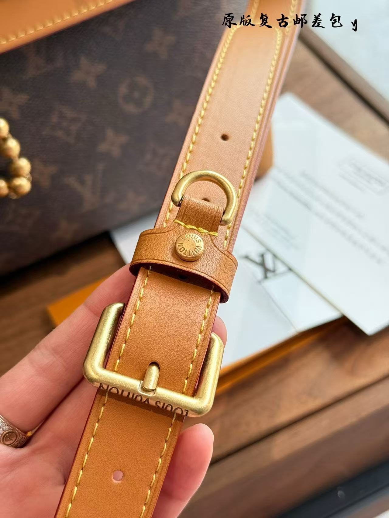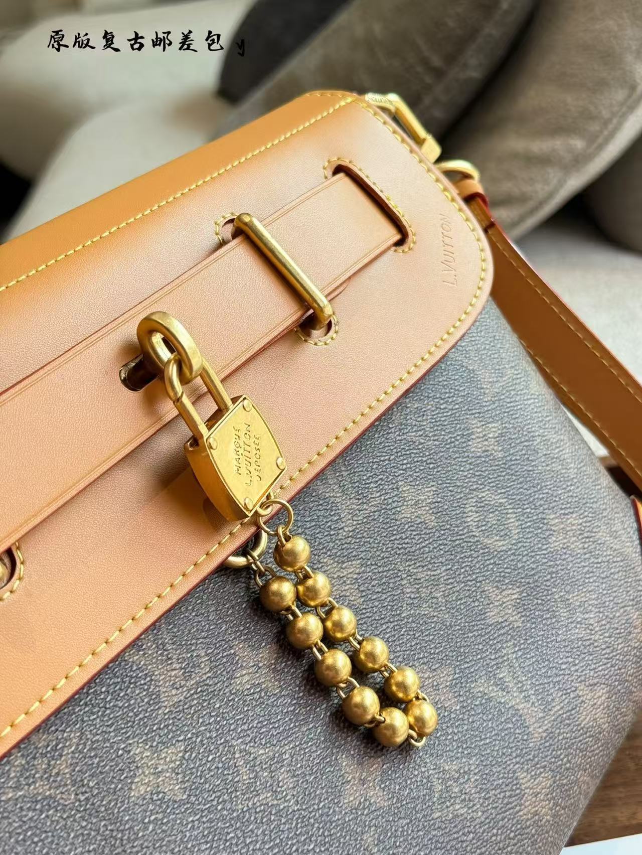 Dazzling beaded decoration, L.Vuitton logo embossing, and trims~