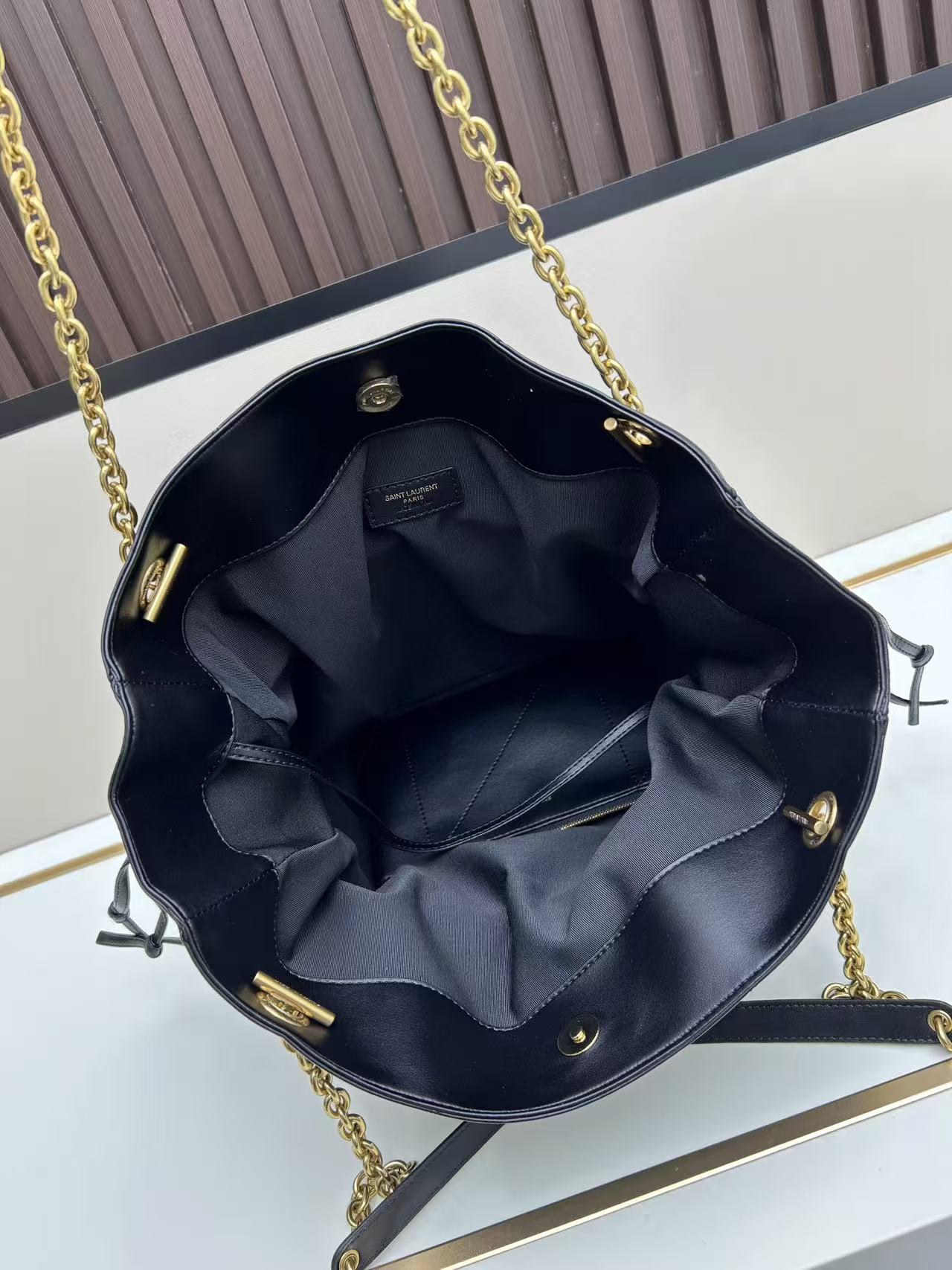YSL Drawstring Leather Shoulder Bag