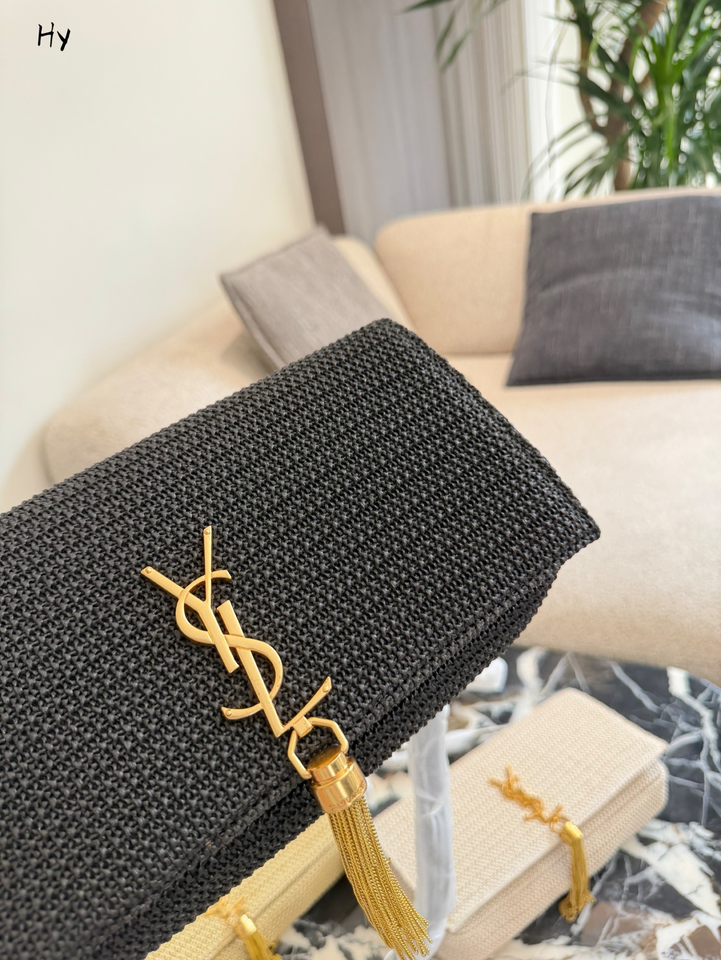 Saint Laurent Nero Raffia Kate Shoulder Bag