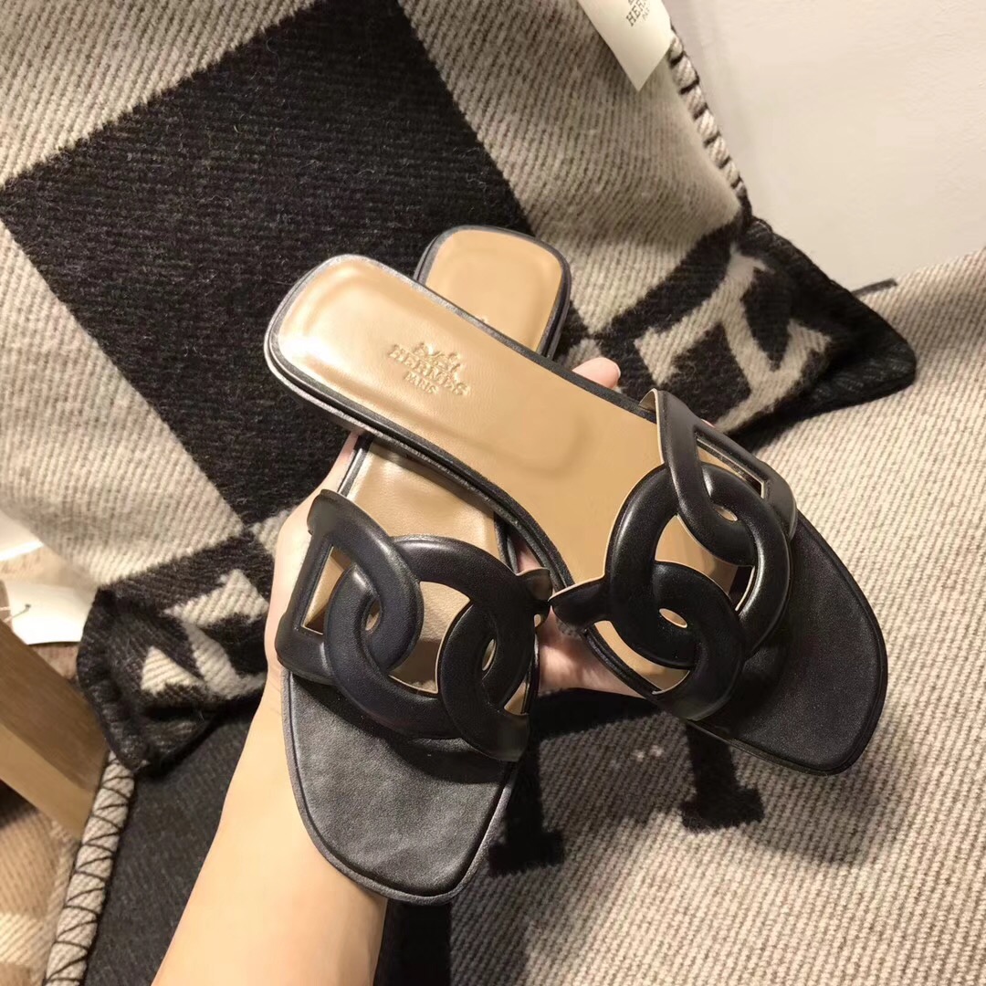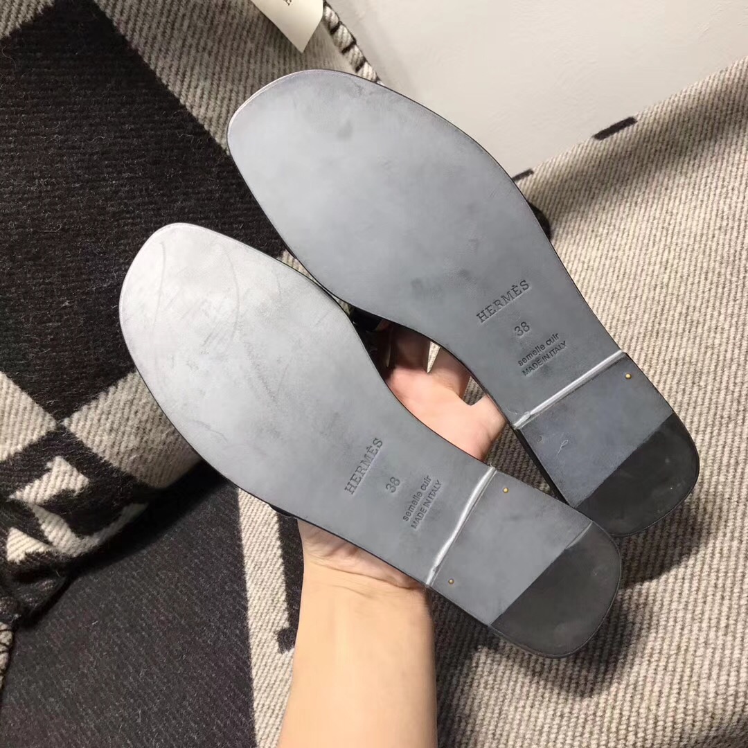 Hermes Aloha Leather flat Sandals Slide