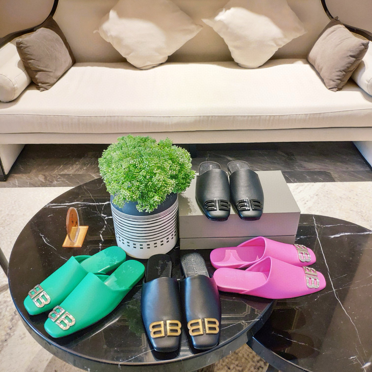 Balenciaga Leather Round toe Slippers Slide Sandal