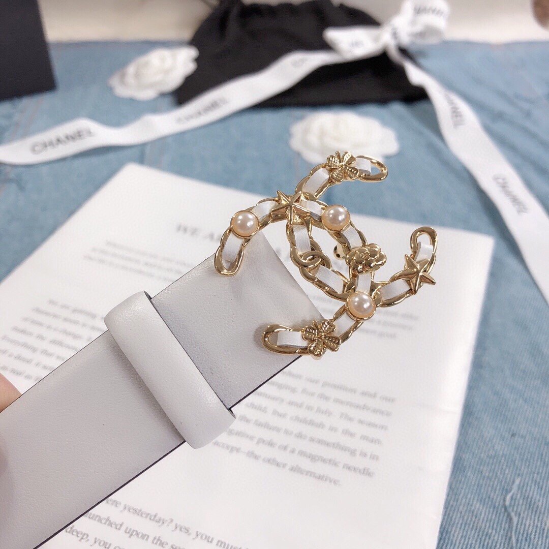 Chanel Belt With Double C Buckle White White-Toned Hardware Women Belt 30MM