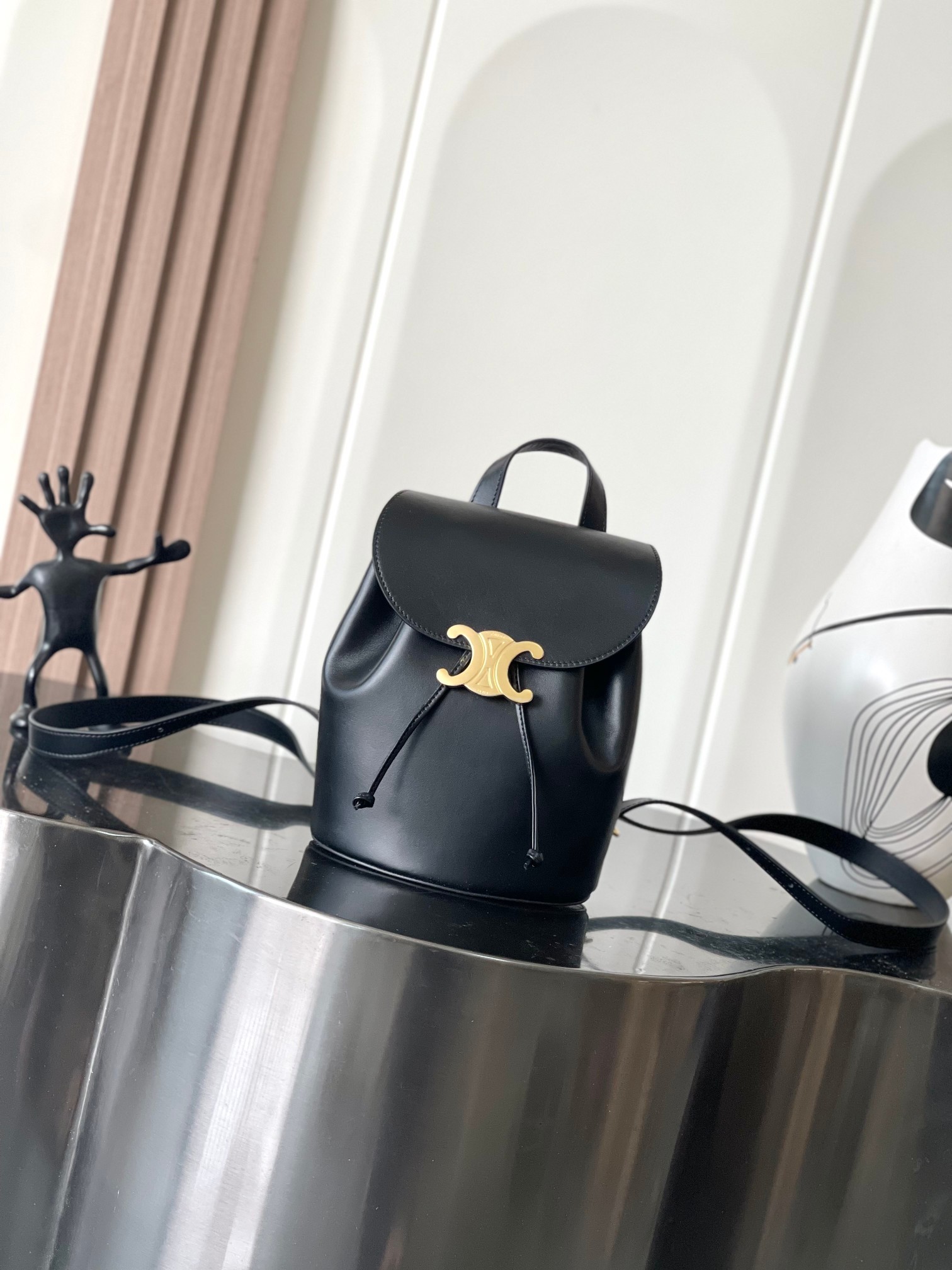 CELINE MINI TRIOMPHE IN SHINY CALFSKIN BLACK