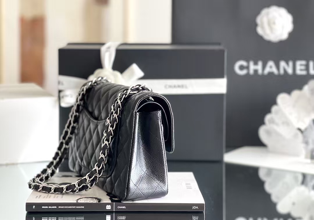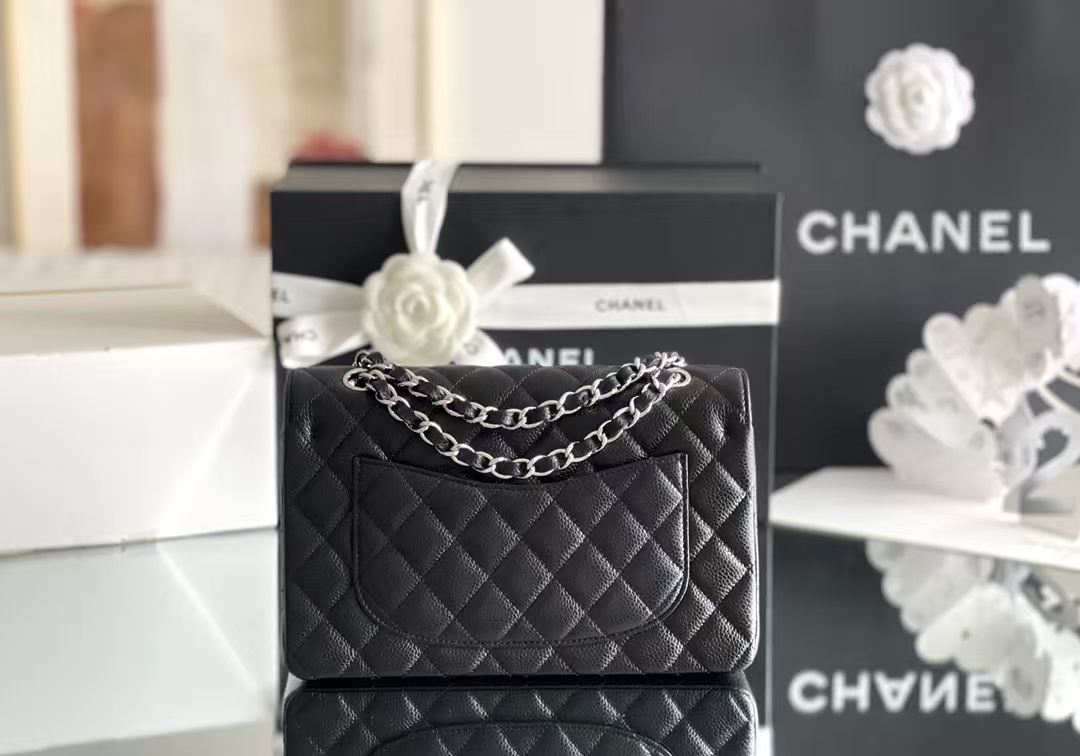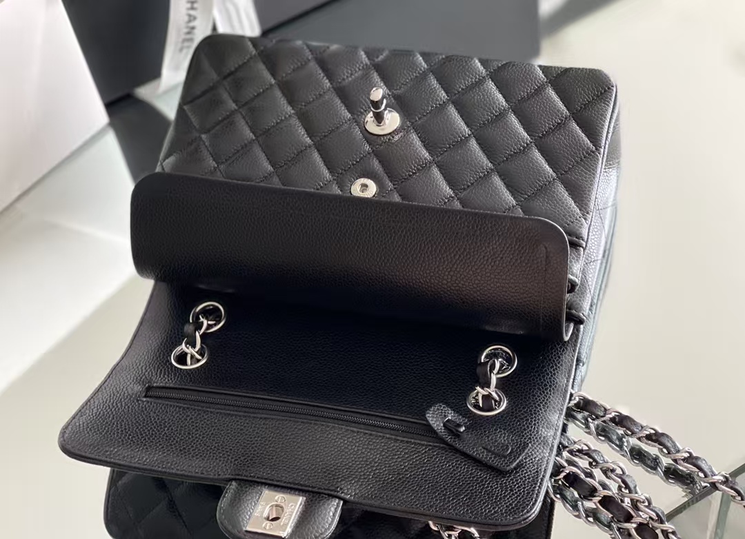 CHANEL Classic Double Flap Quilted Caviar Silver Top Quality