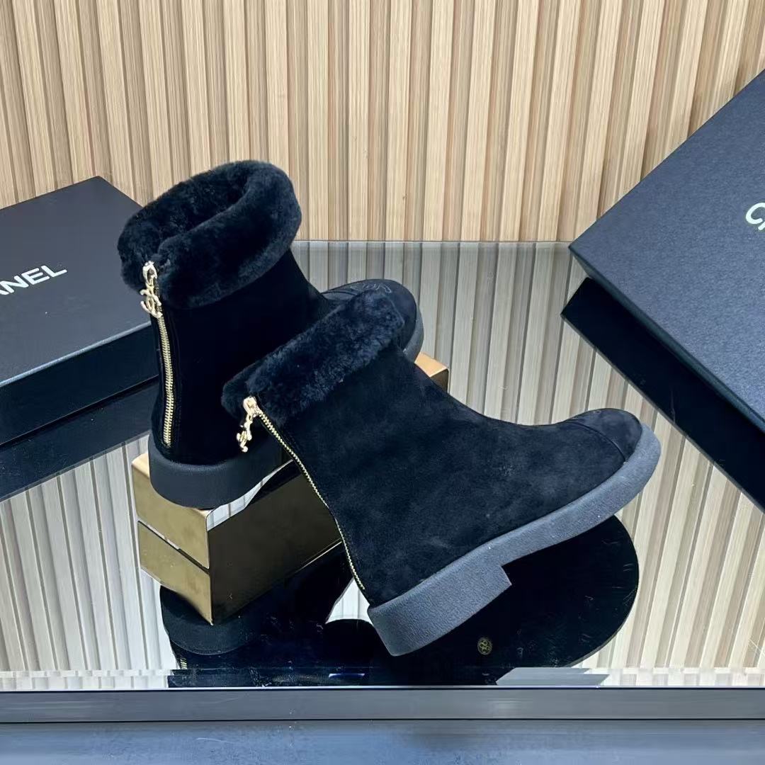 Chanel Fur Boots Black