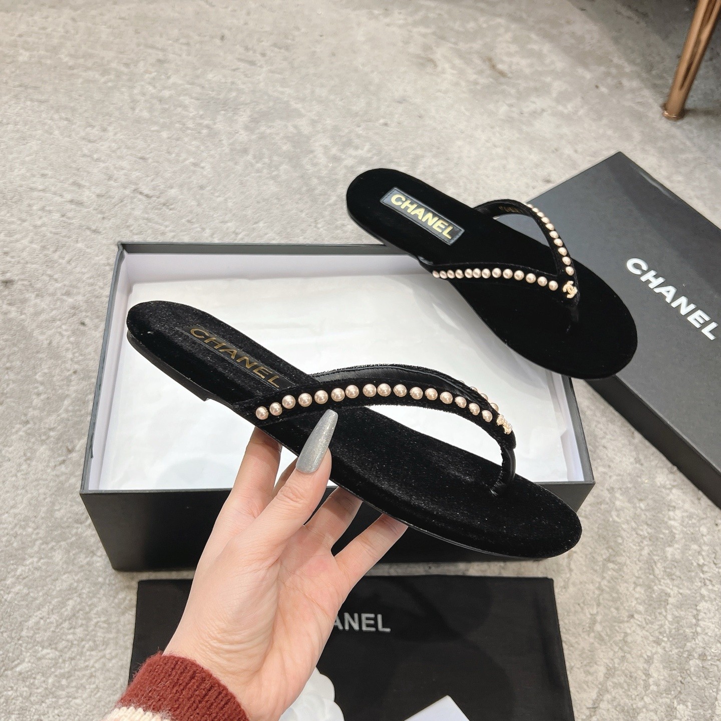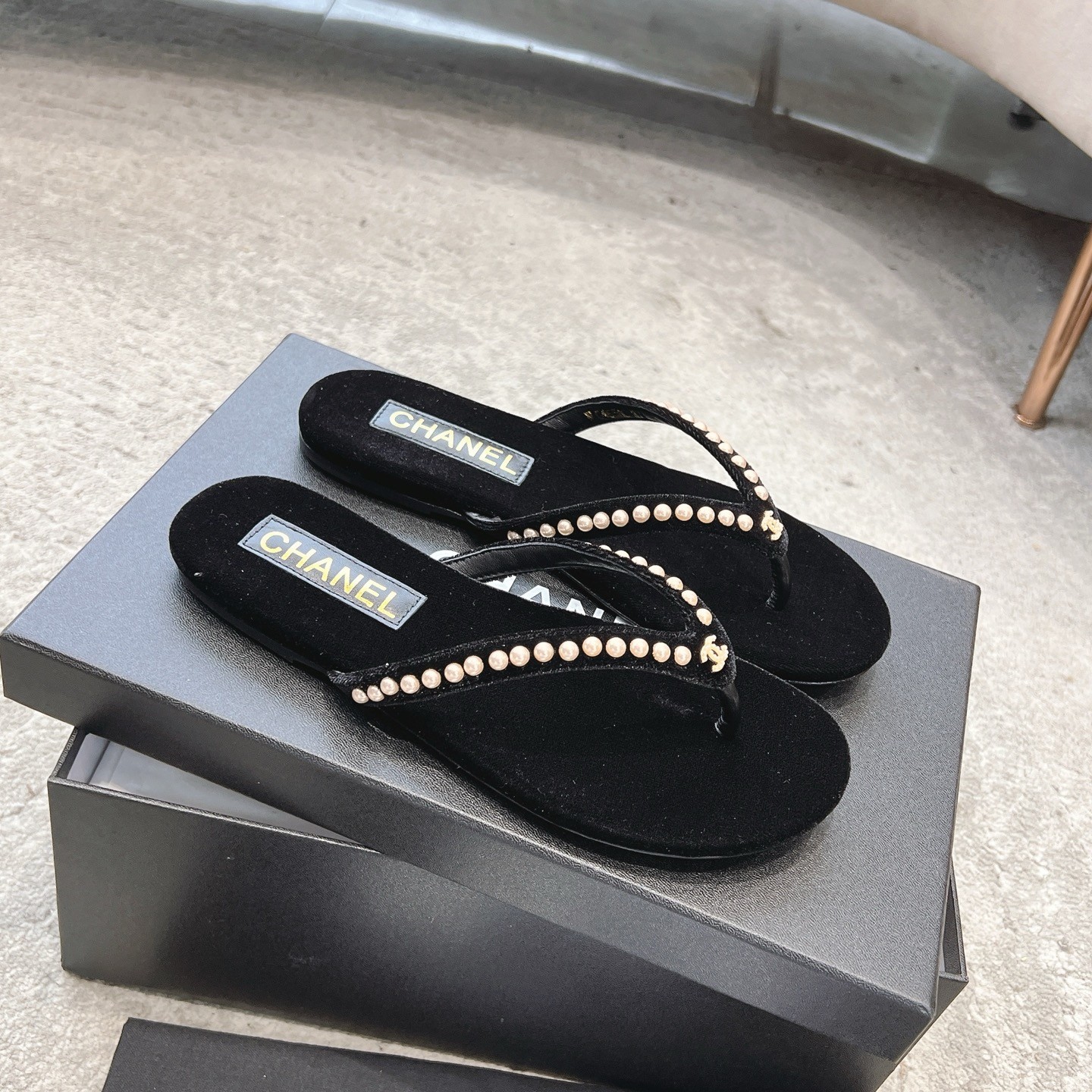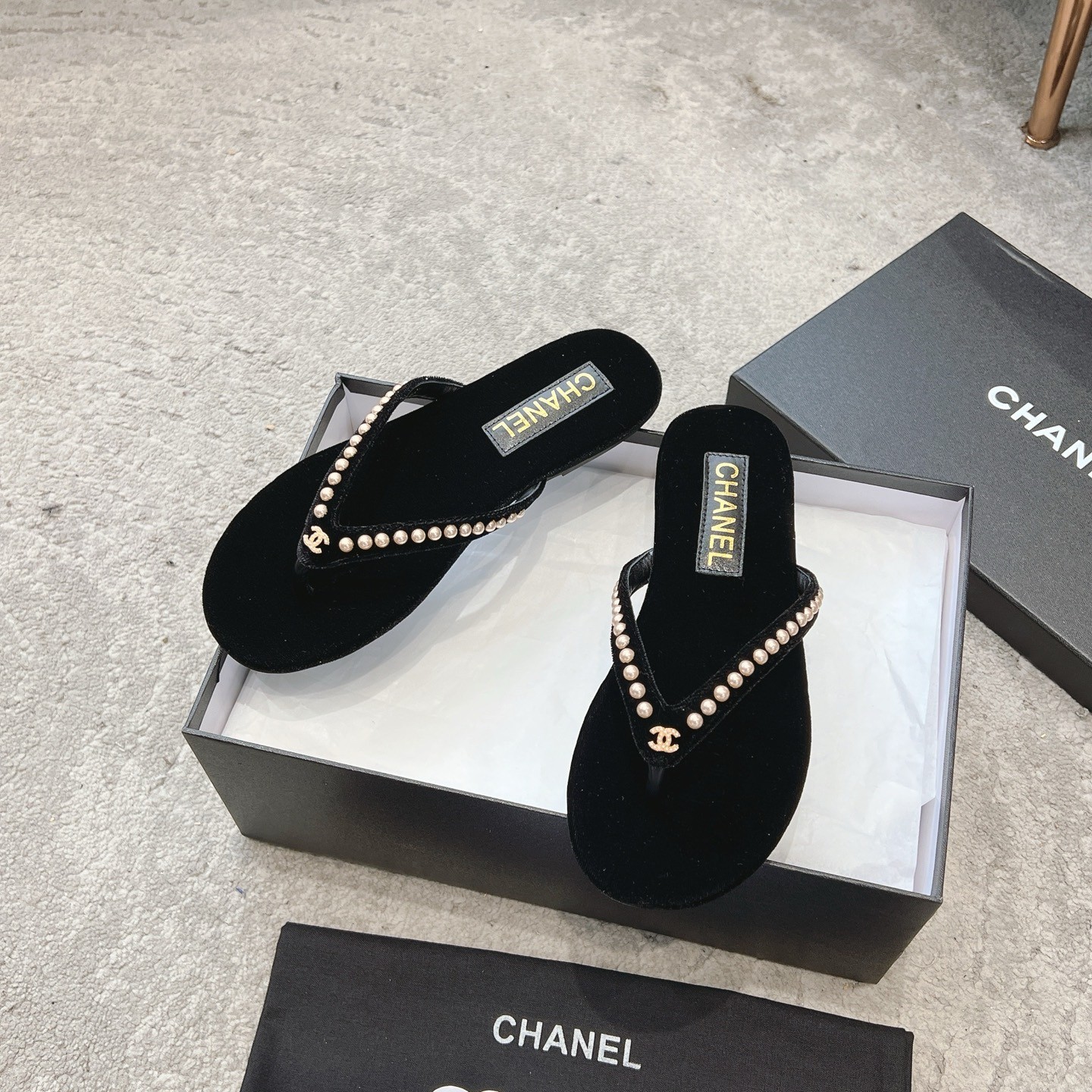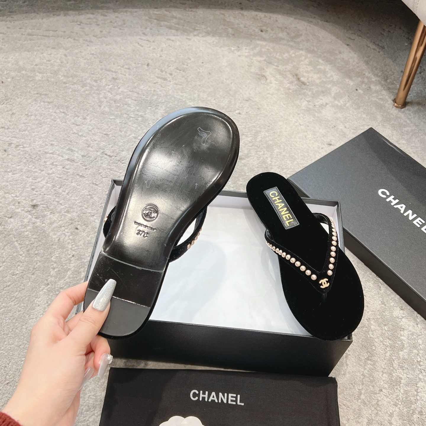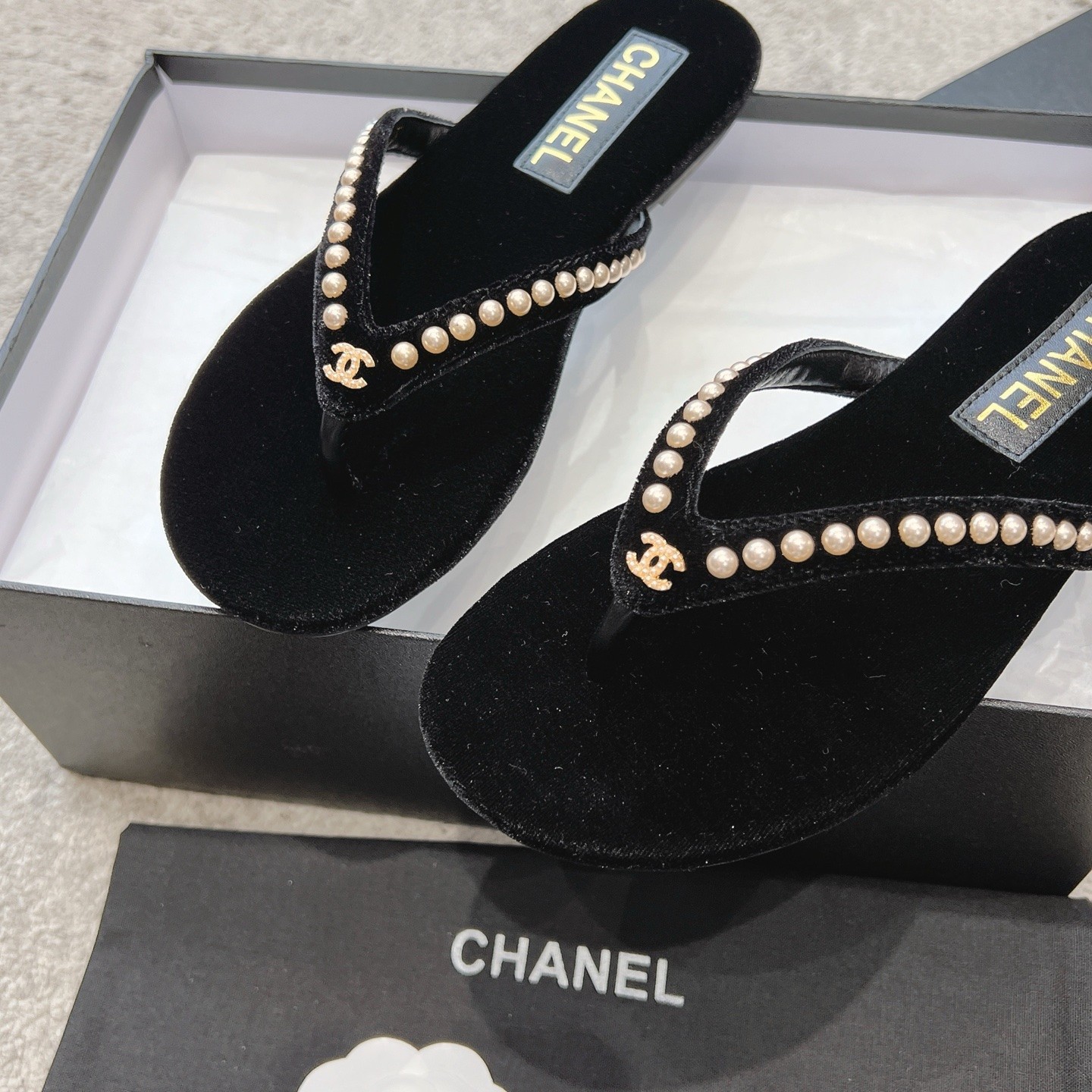 Chanel Velvet 25C Flip-flops 10A