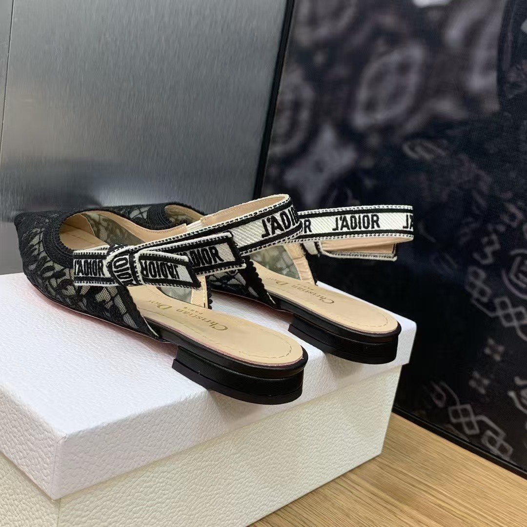 Dior Embroidered Sandals Slingback Flat Mules Black