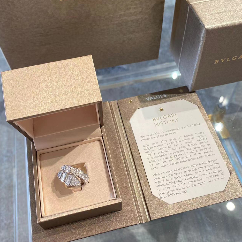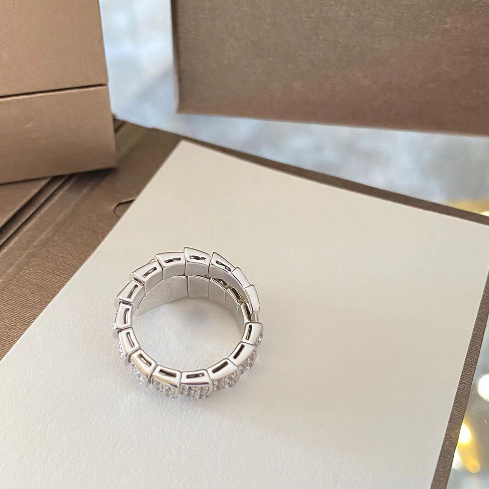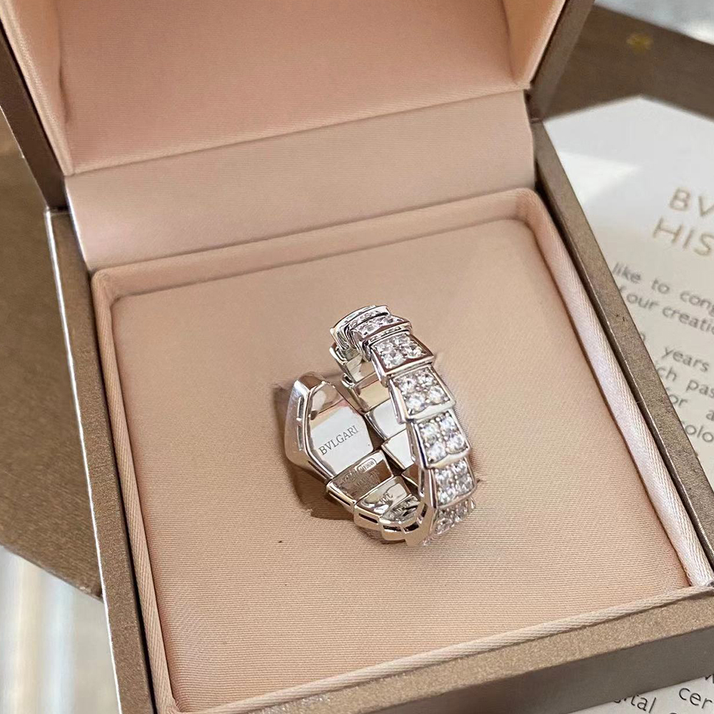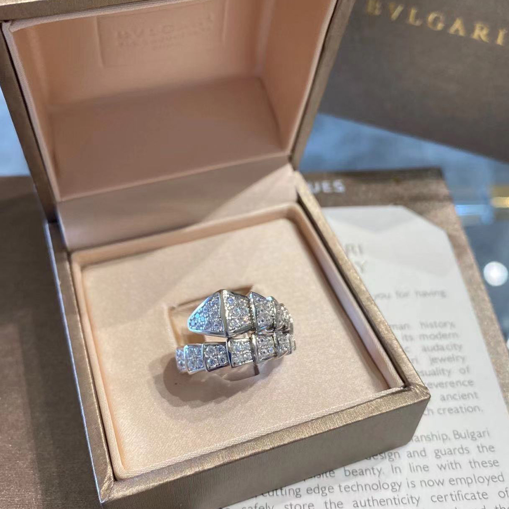 With its signature blend of pure aesthetics, enveloping shapes and charismatic flair, the Serpenti Viper 18 kt white gold ring with full pavé diamonds is an essential interpretation of Bvlgari’s icon of endless metamorphosis. Capturing the powerful and ever-evolving nature of the mythical serpent, the magnetic jewellery creation inspires us to embrace change as a source of strength and self-confidence. Easy to mix and match, the ring offers endless styling options, embodying the collection’s versatile spirit.