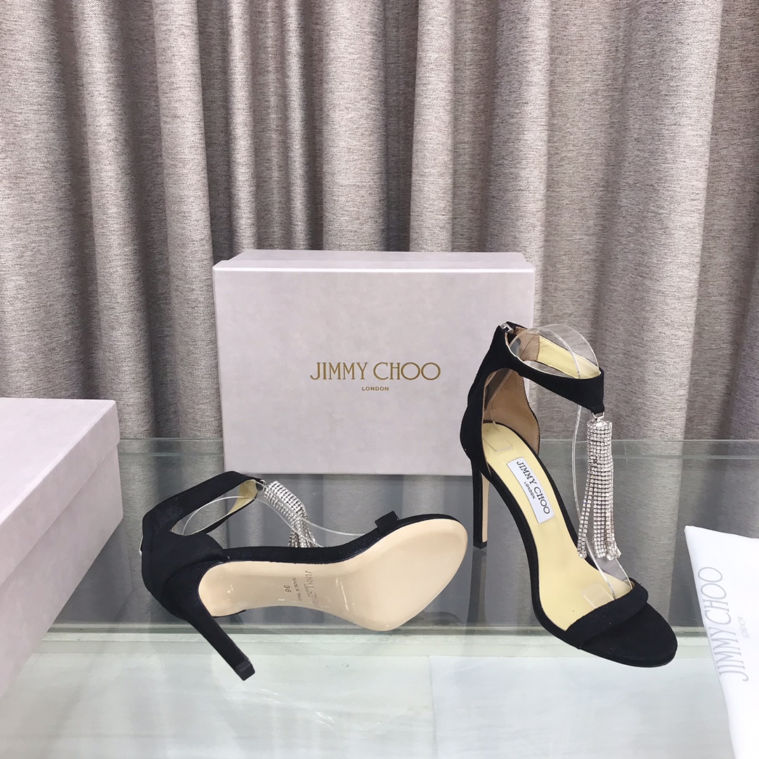 Jimmy Choo Black Velvet Heels – 10CM Slide Style