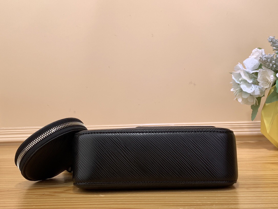 The Marellini bag features Louis Vuitton's iconic Epi, bringing the dynamic elements of the Marelle bag to a more compact size. The round coin purse is removable and the mirror, which is attached to the bag by a chain, is housed in the front patch pocket.