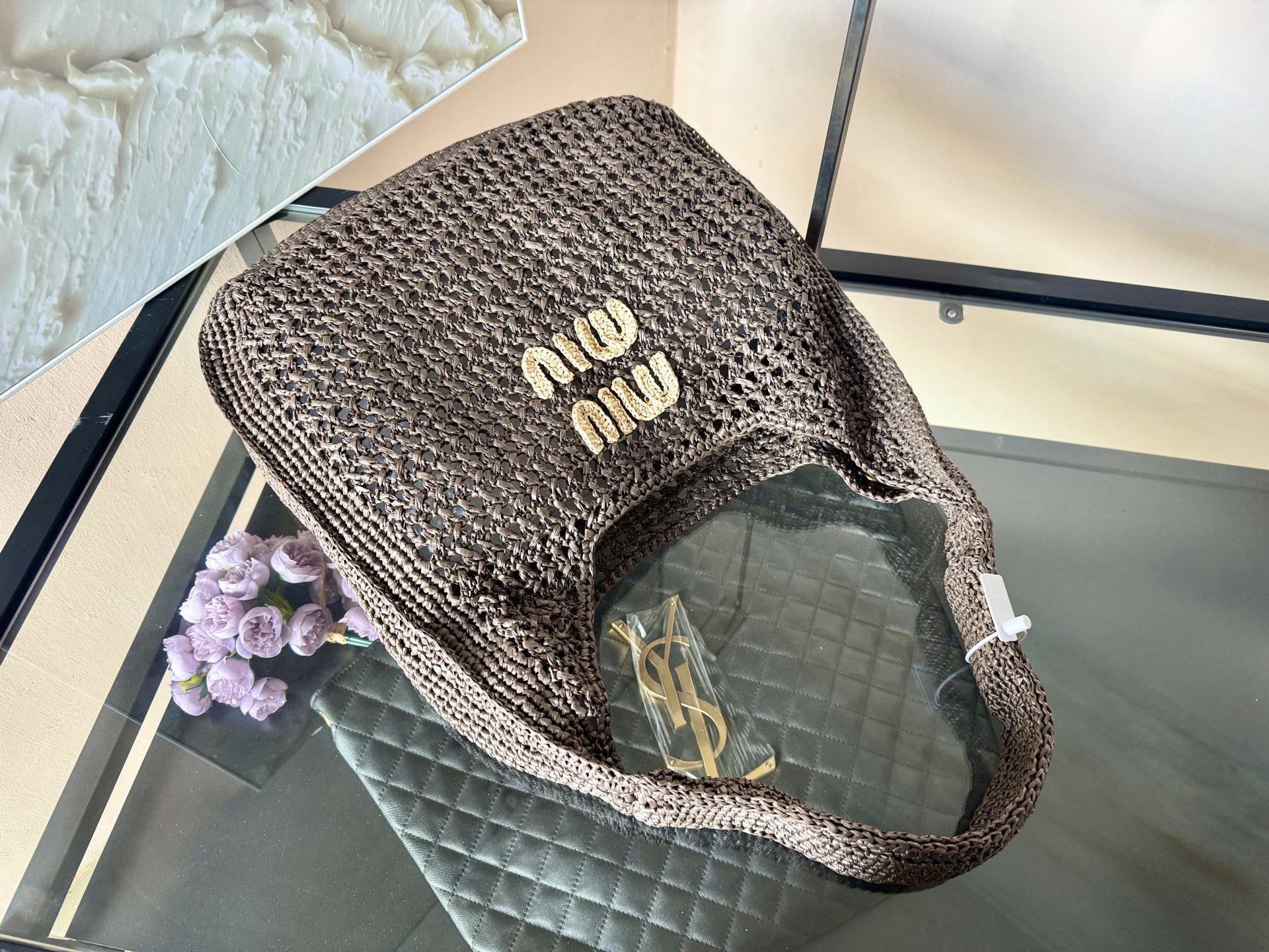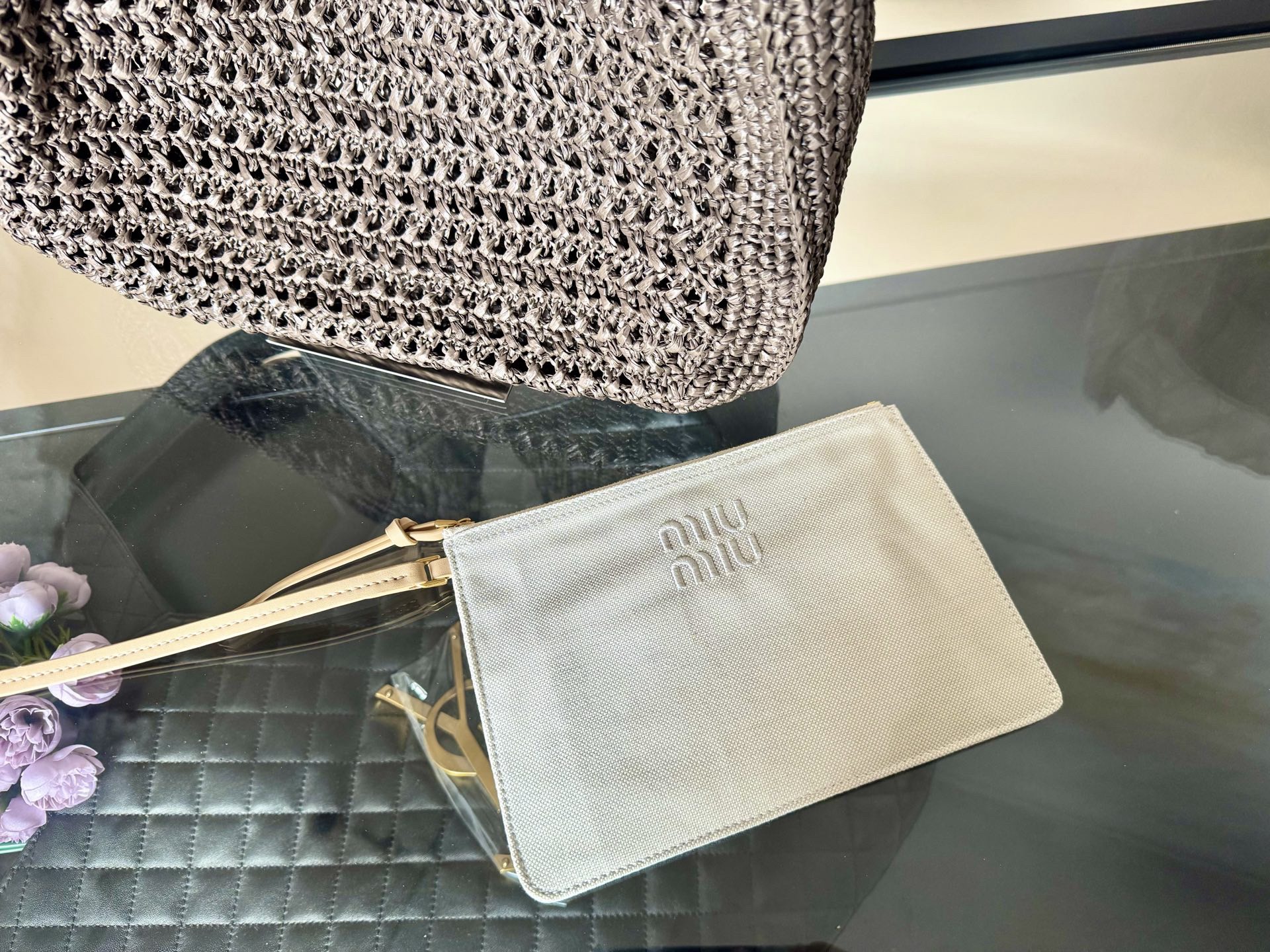 Miu Miu Raffia-effect Woven Shoulder Bag 10A
