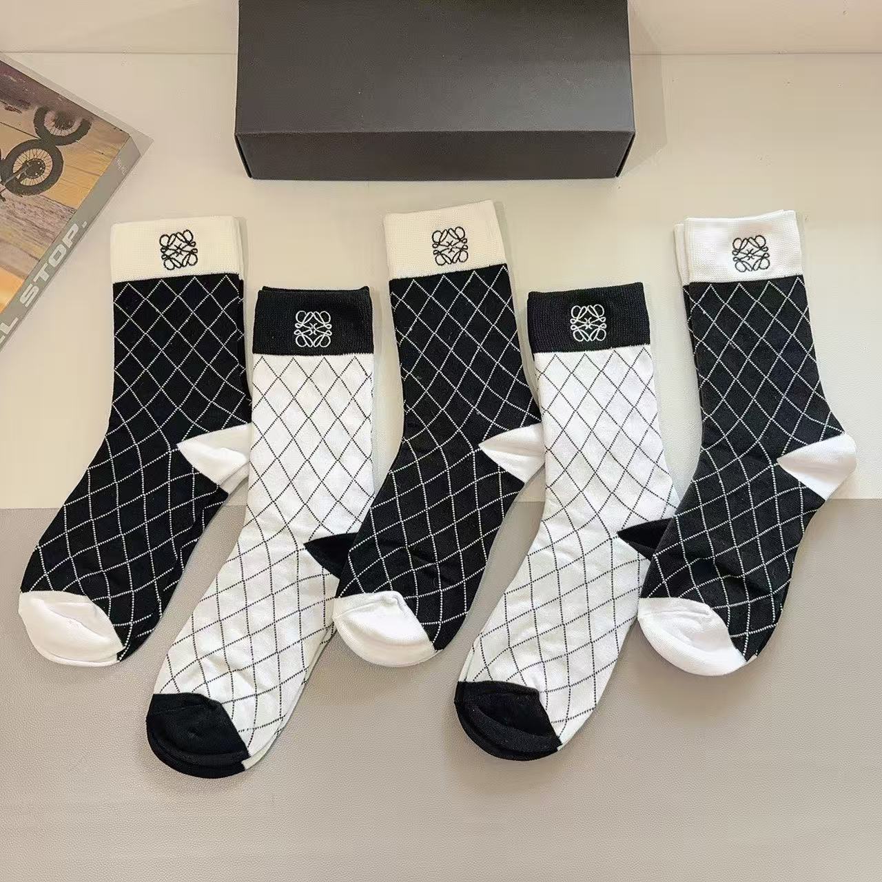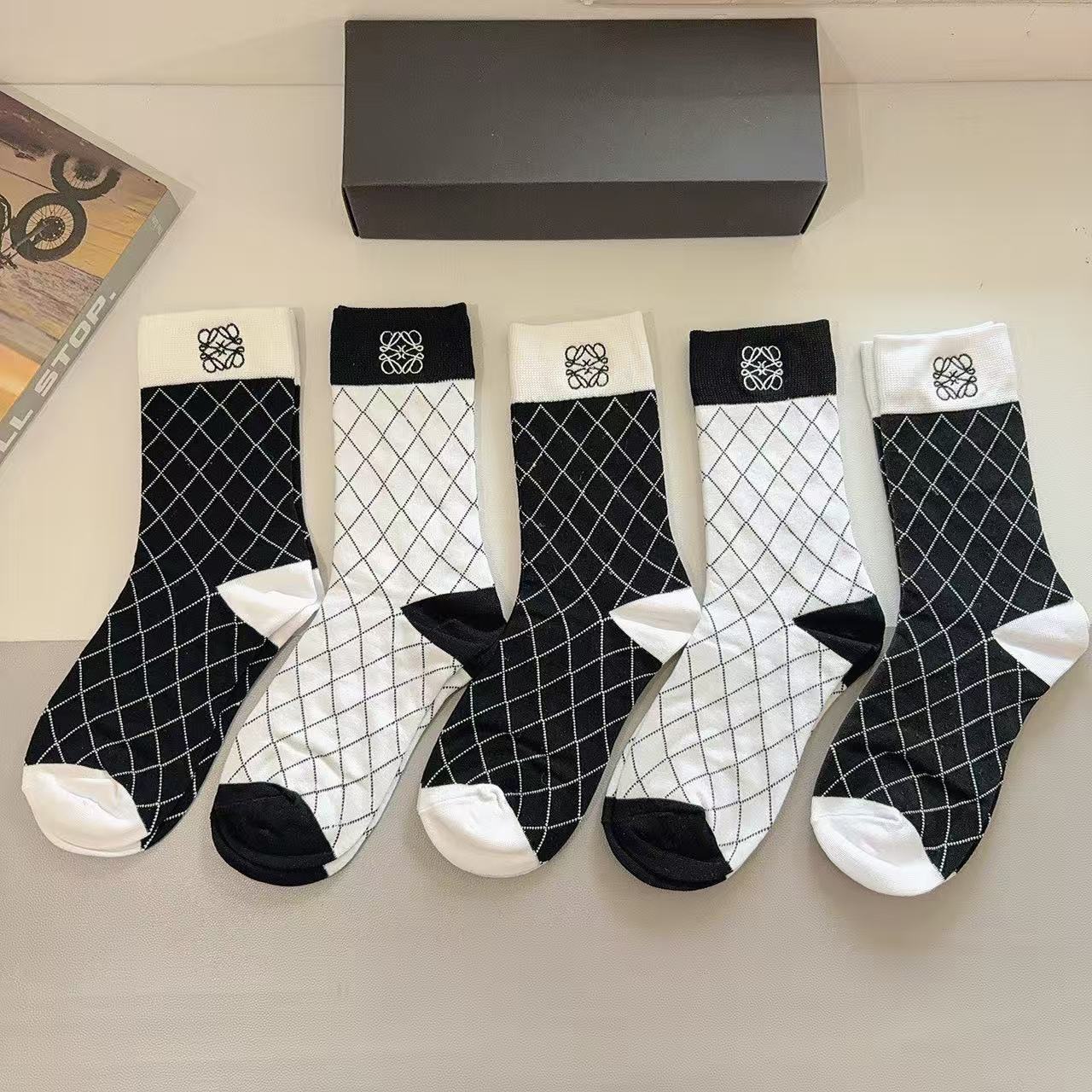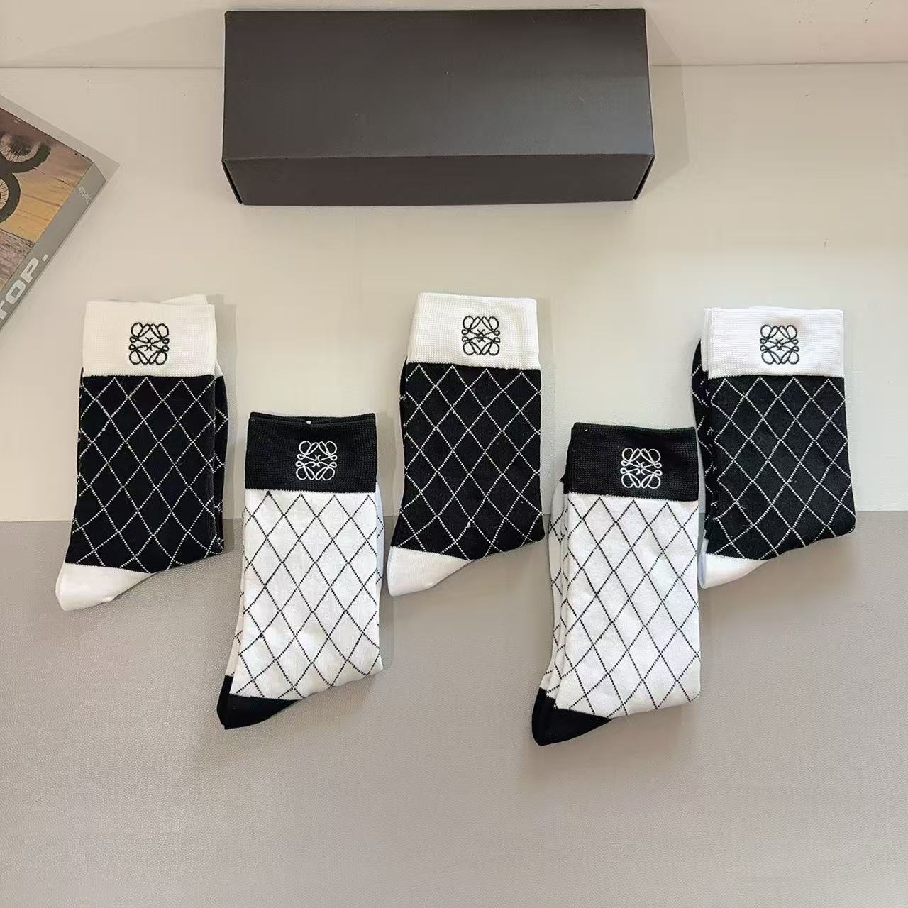 Luoyi Embroidered Knee-High Socks [5 Pairs per Box]
