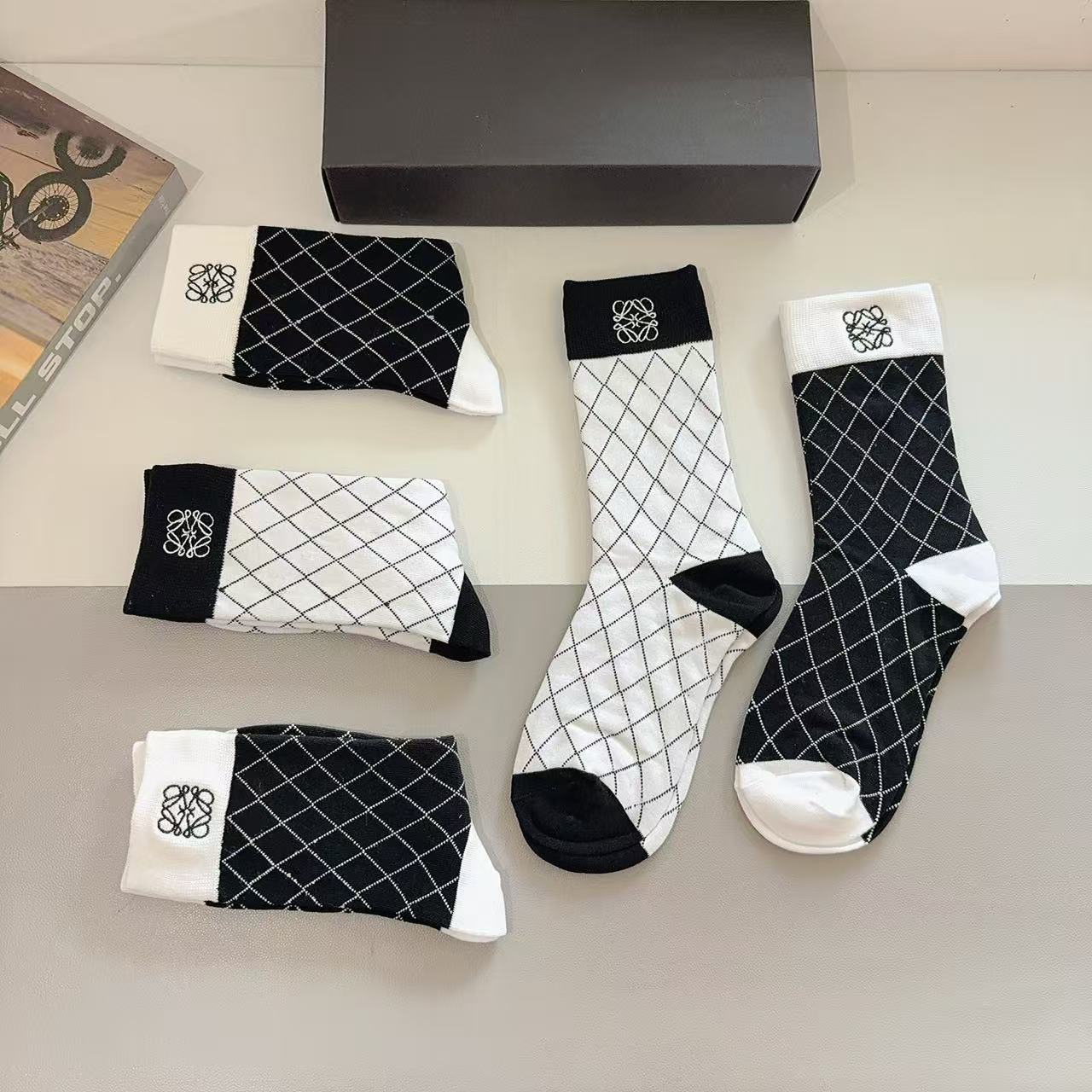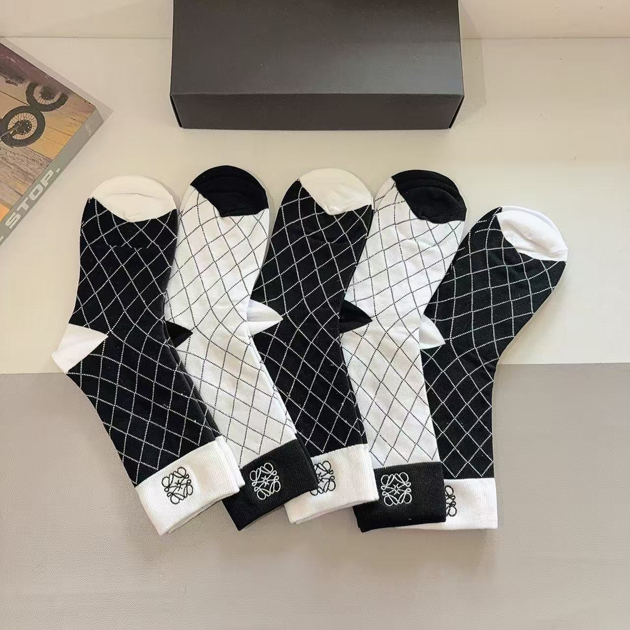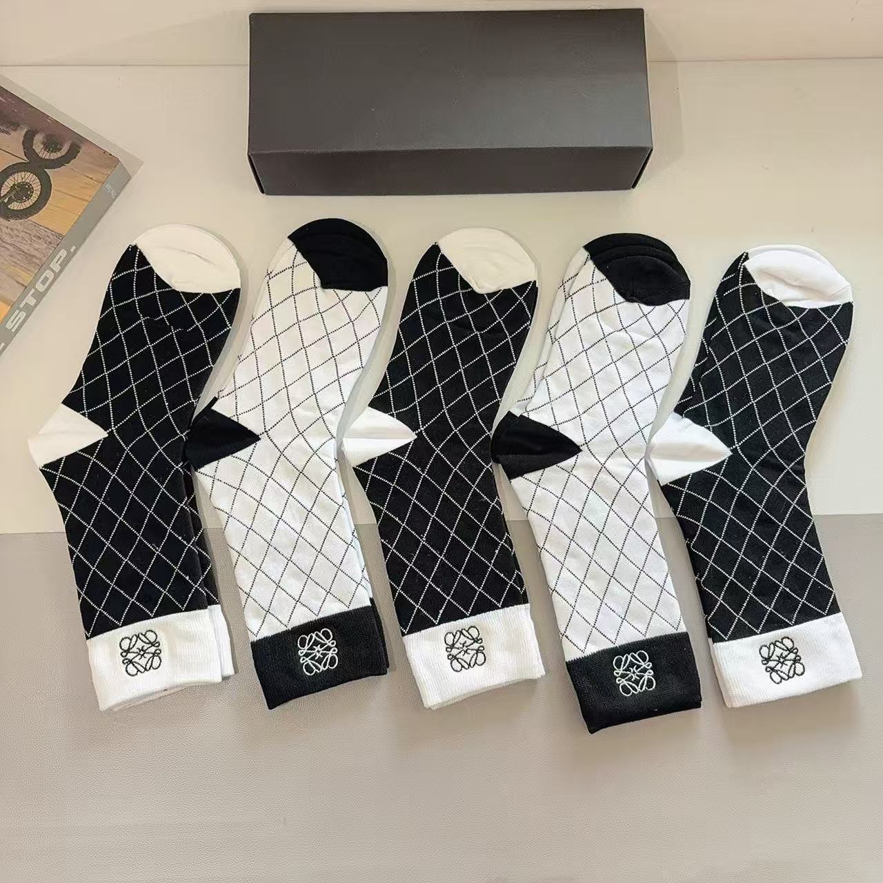 Luoyi Embroidered Knee-High Socks [5 Pairs per Box]