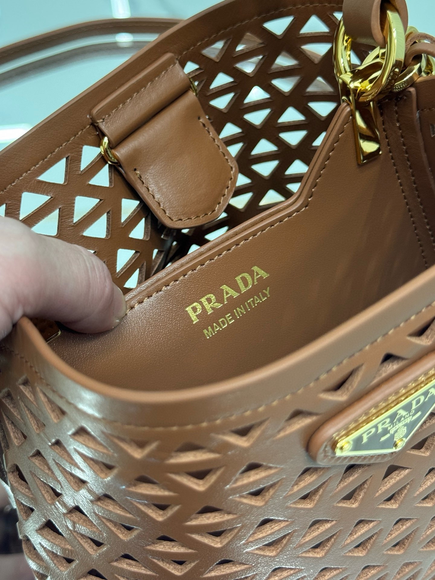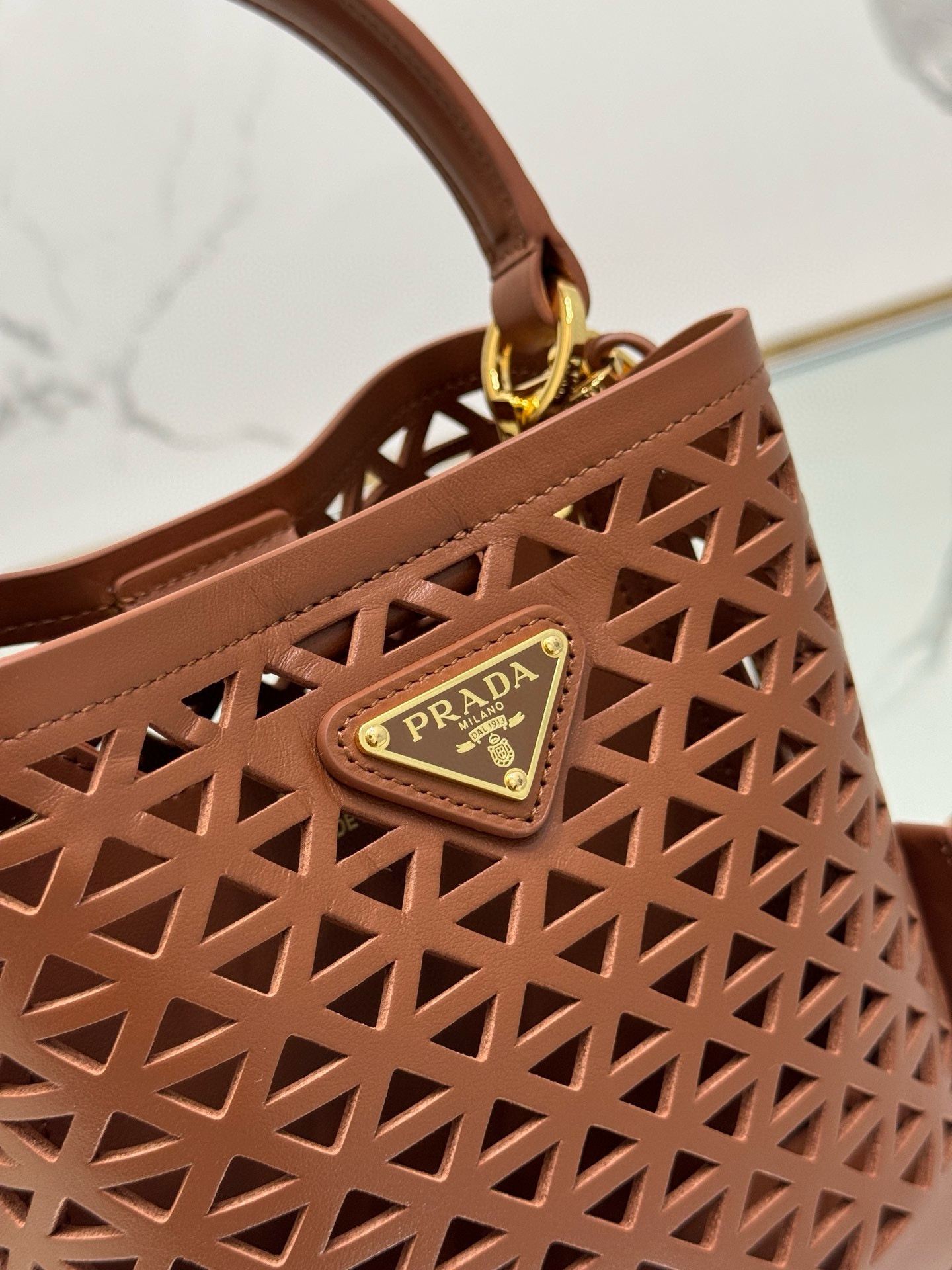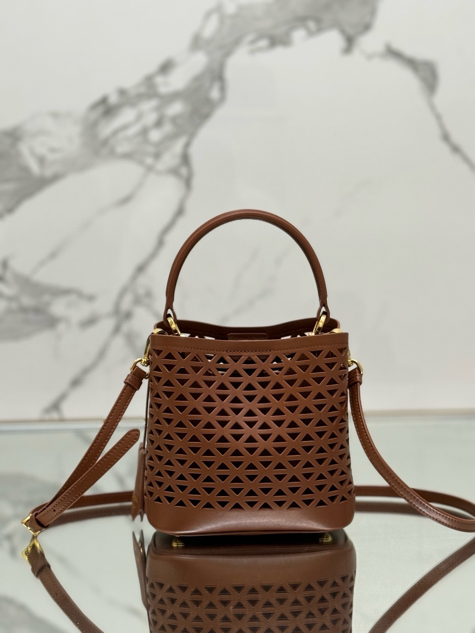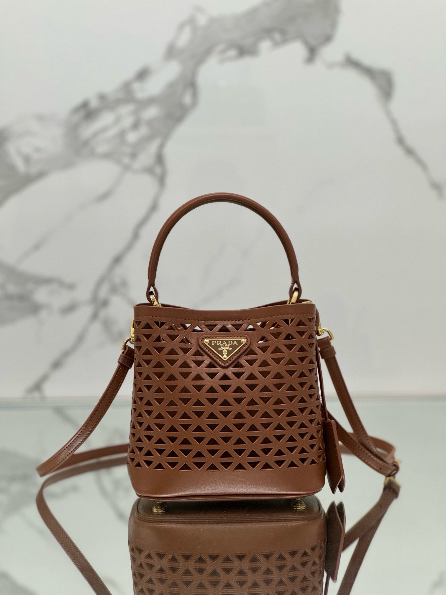 Prada Panier Leather Cutout Pattern Mini Bag