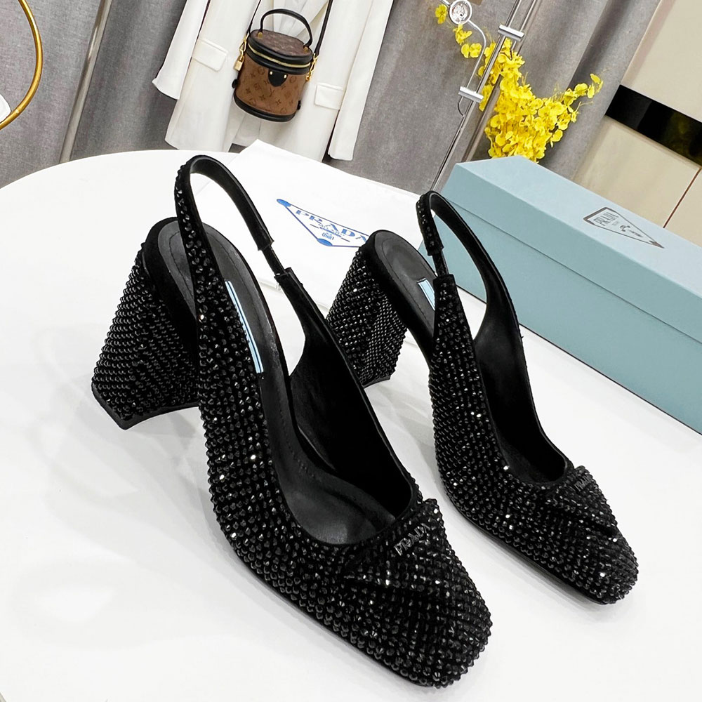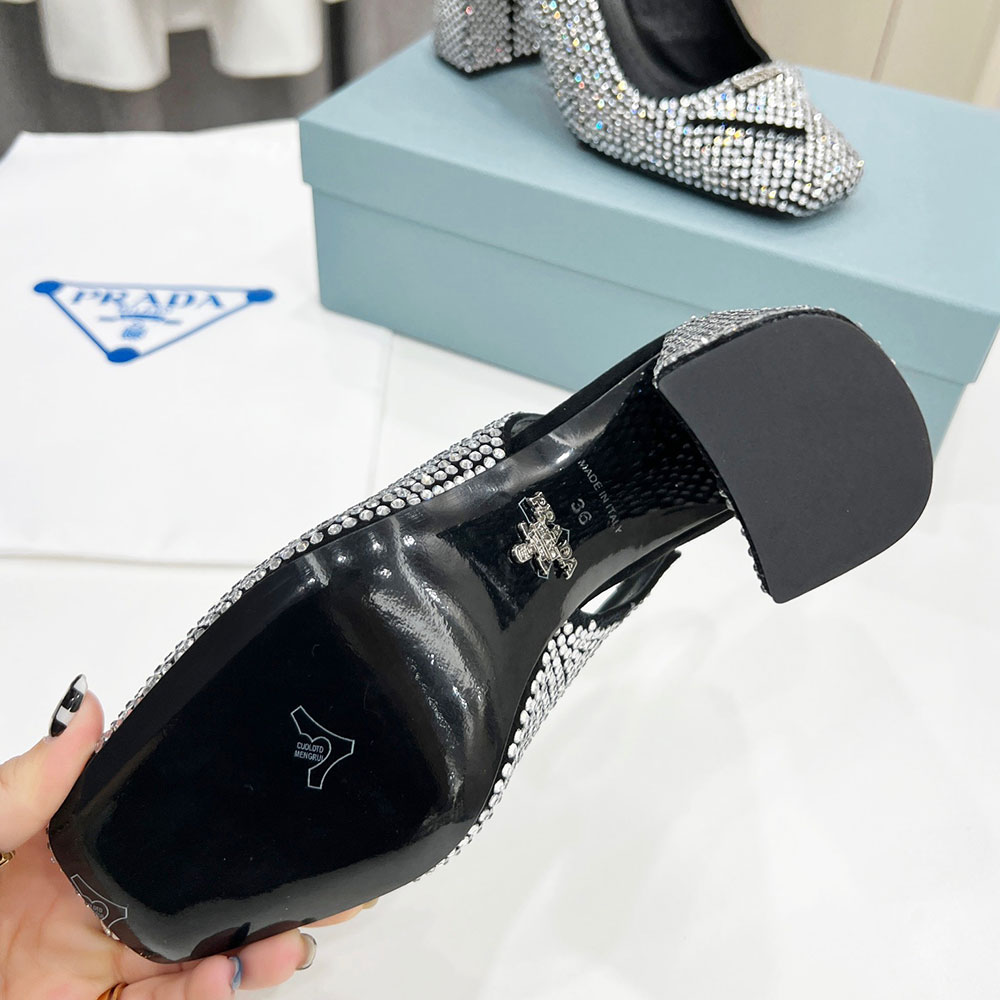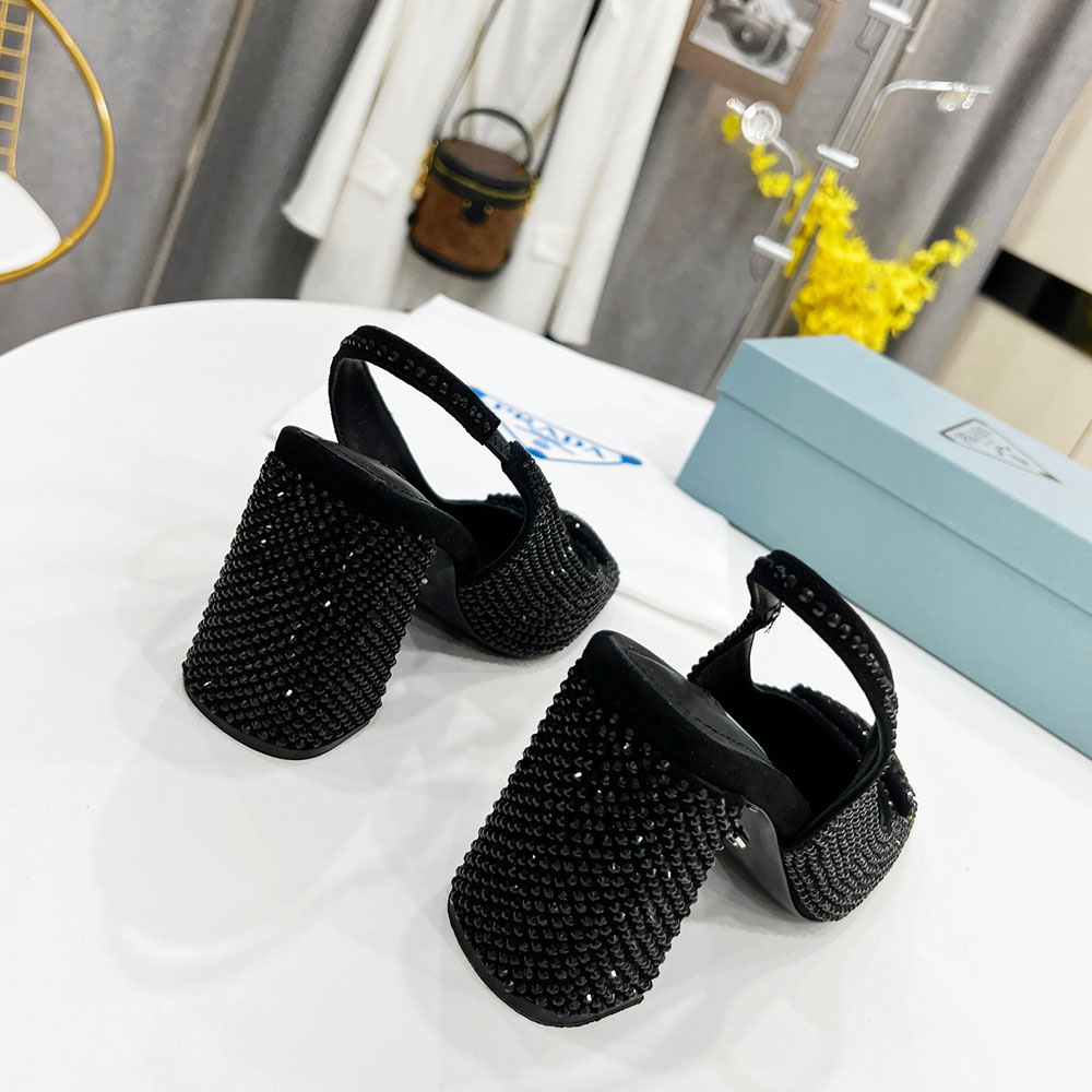 Prada Thick Heel With Drill Slide Sandal Heels