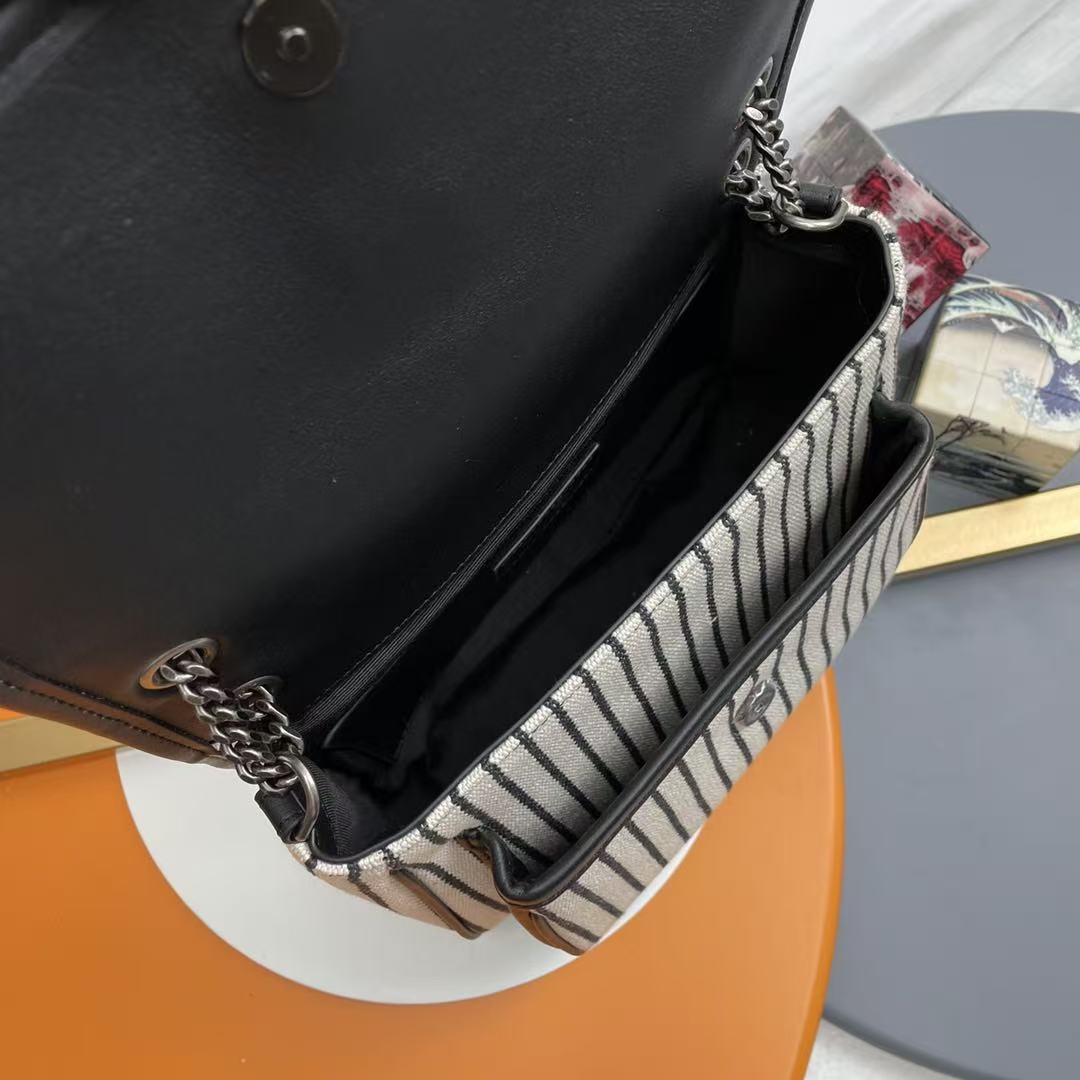 Saint Laurent YSL Cotton Canvas Striped Shoulder Bag