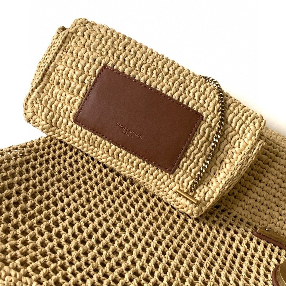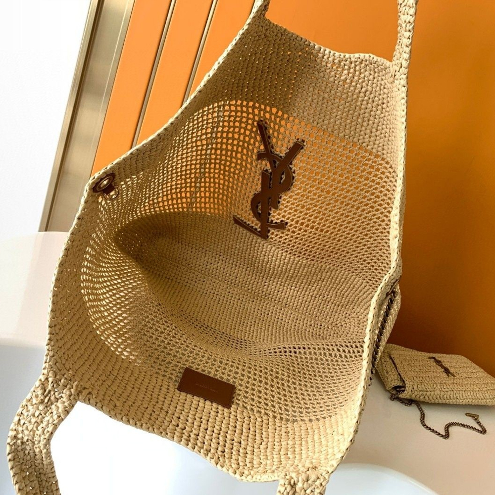 YSL Saint Laurent Raffia Icare Shopping Tote Bag