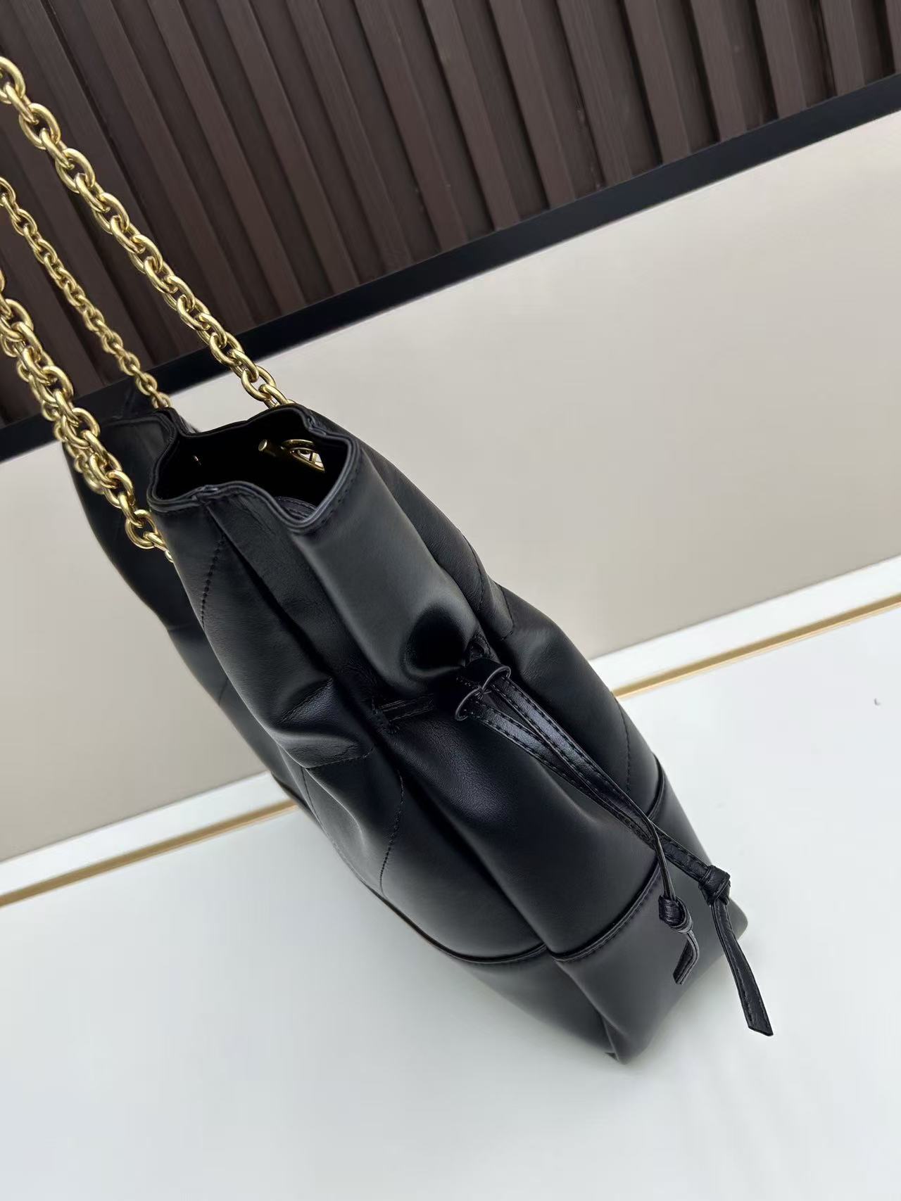 YSL Drawstring Leather Shoulder Bag