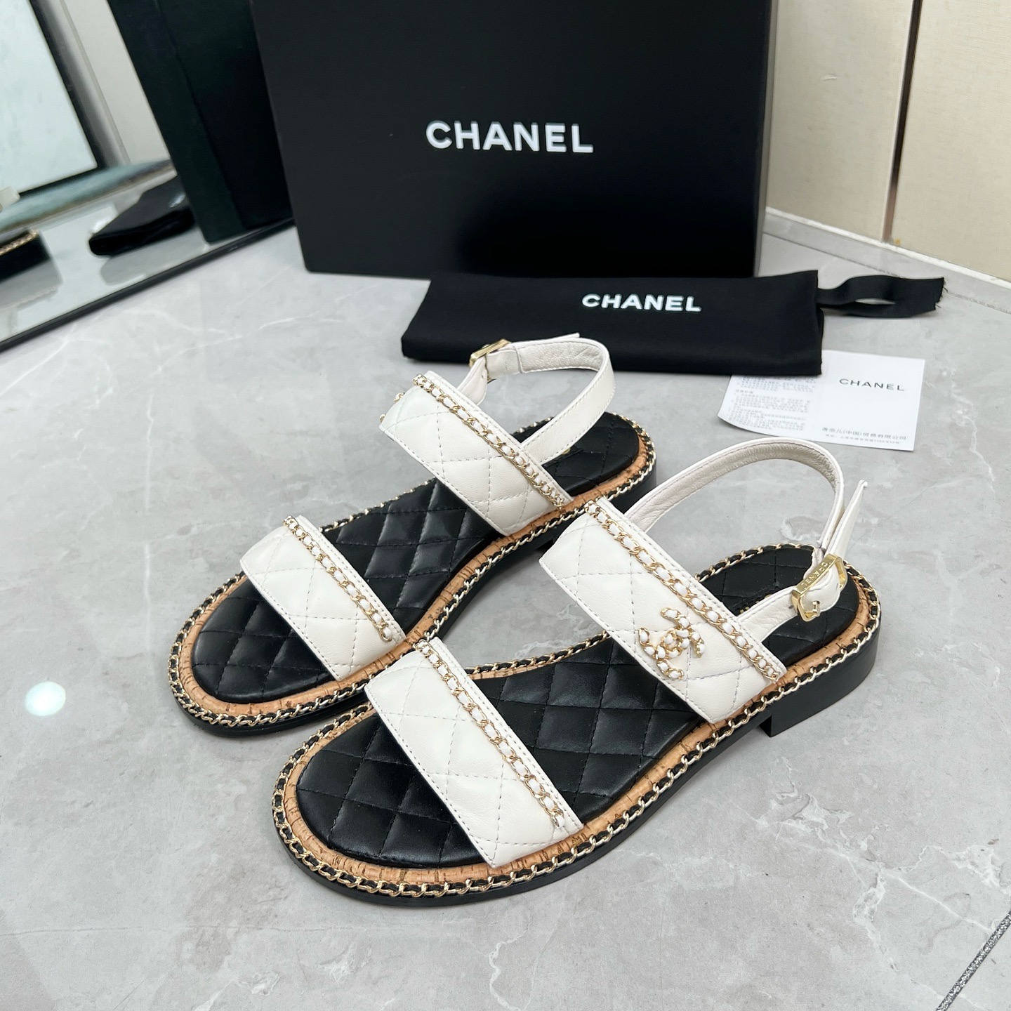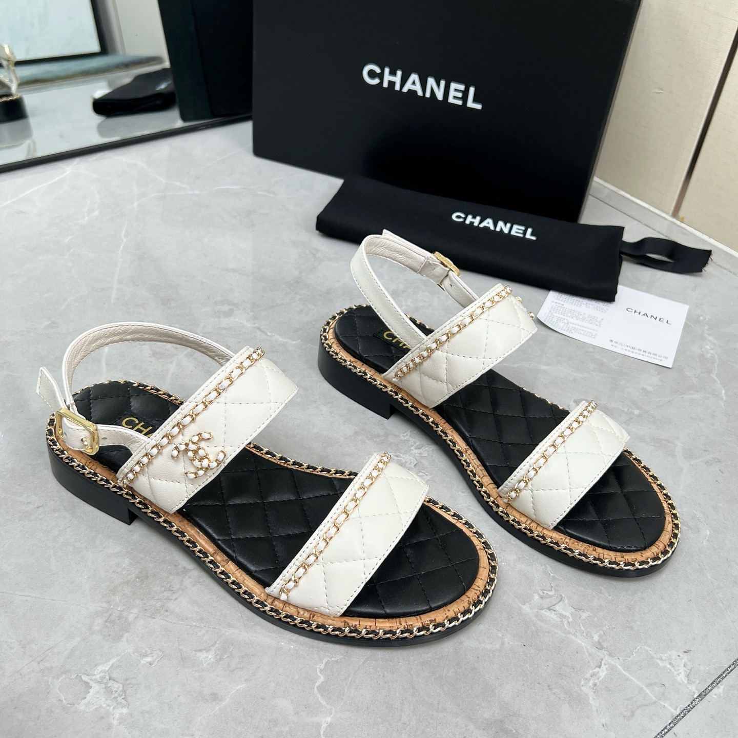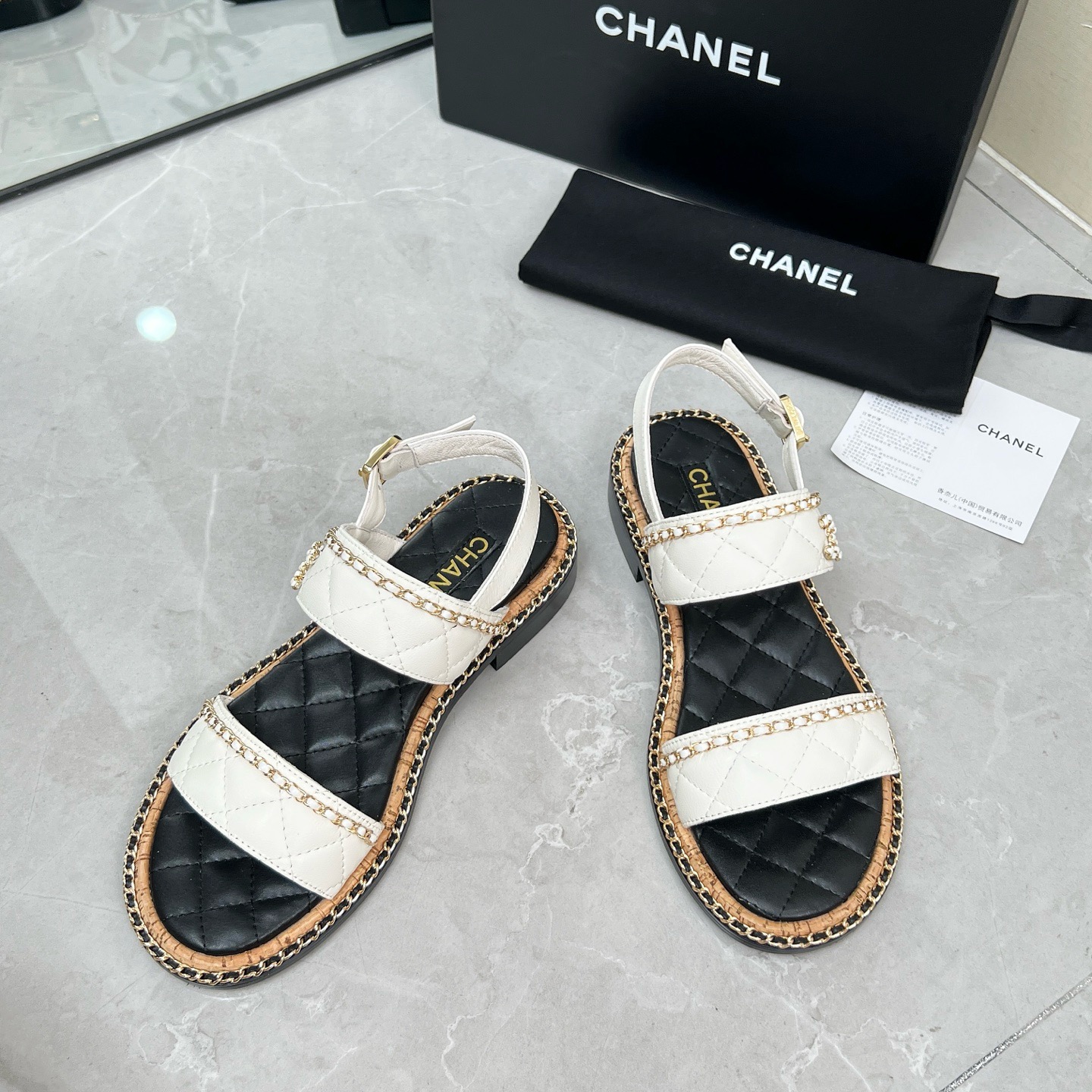 CHNEL* Women's Double Strap Chain Sandals