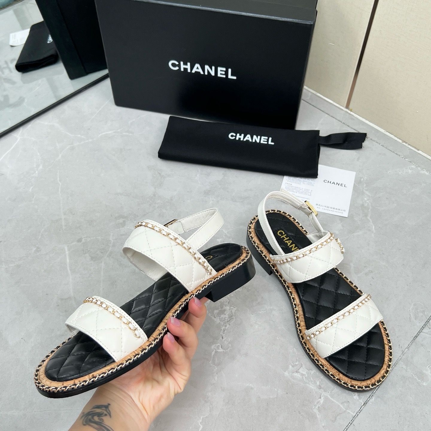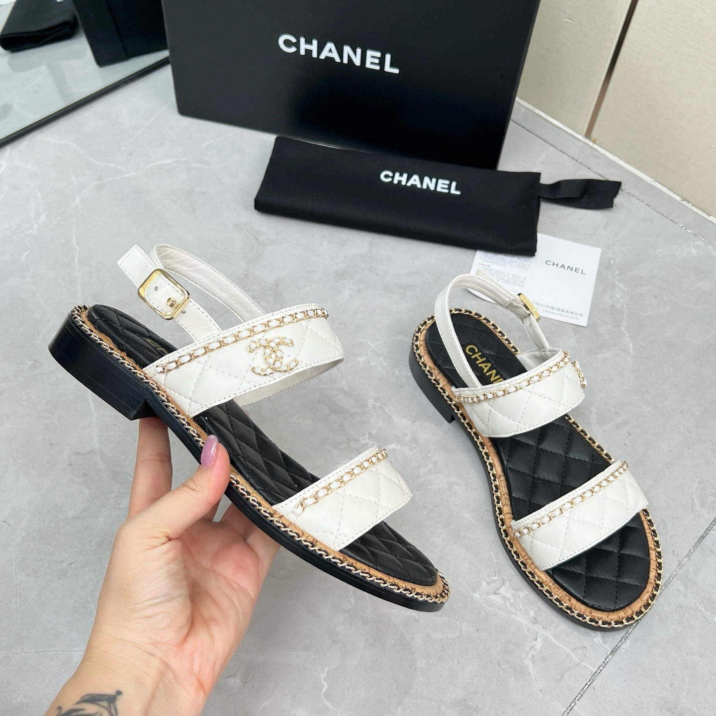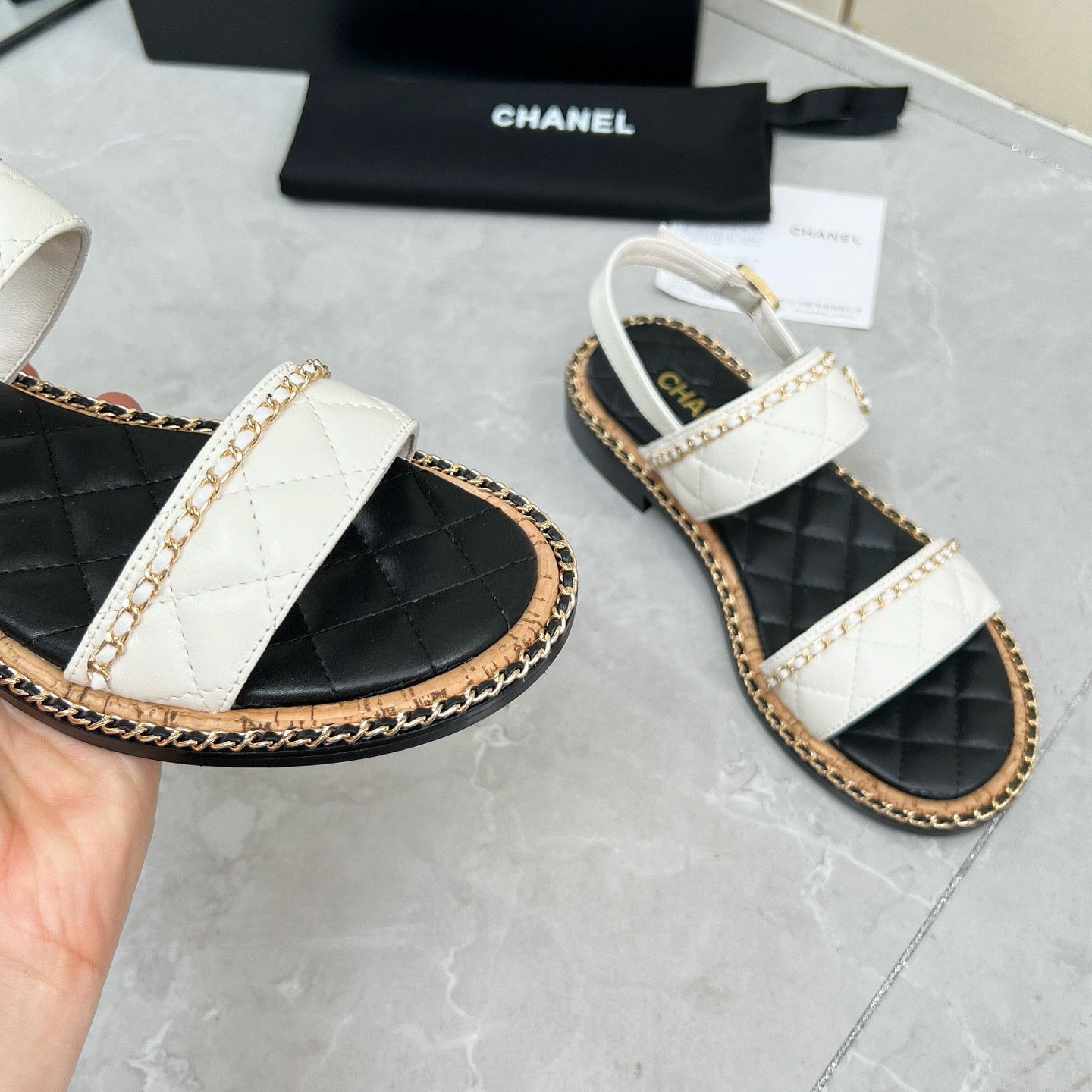 CHNEL* Women's Double Strap Chain Sandals