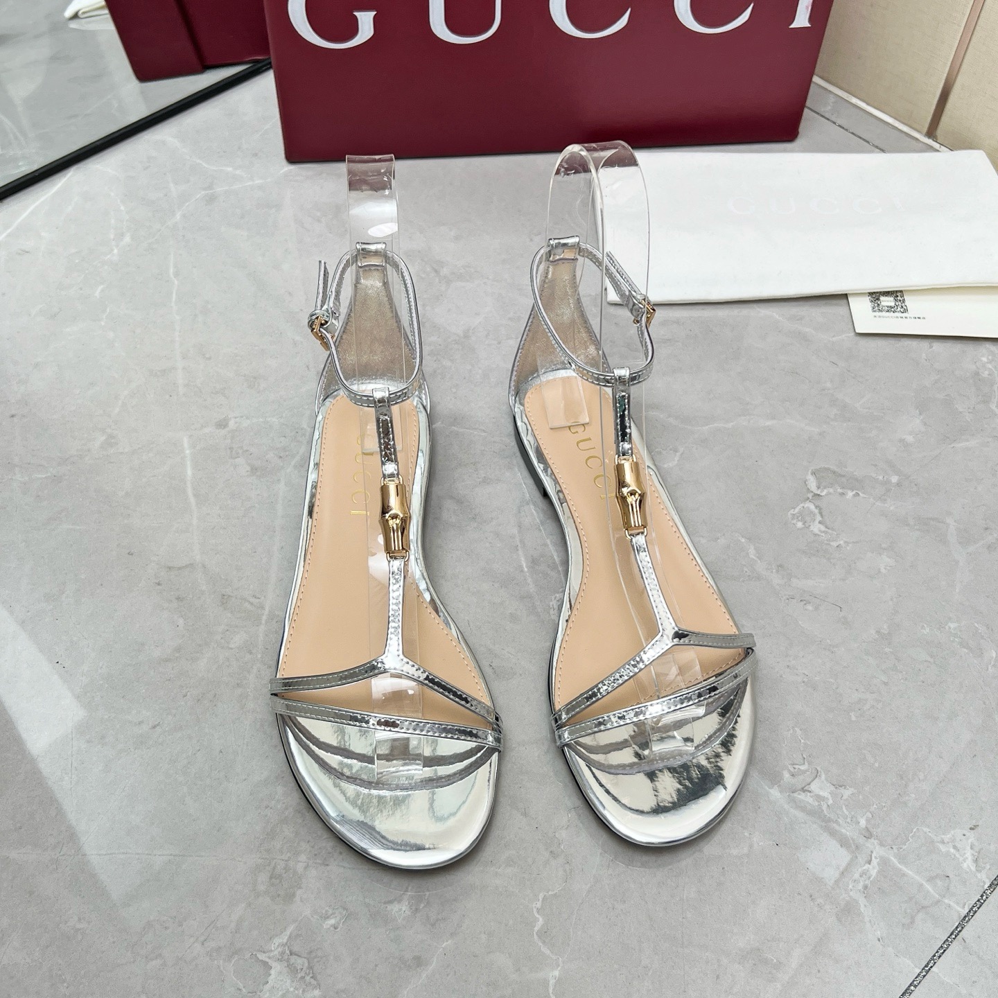Gucci White bamboo leather sandals