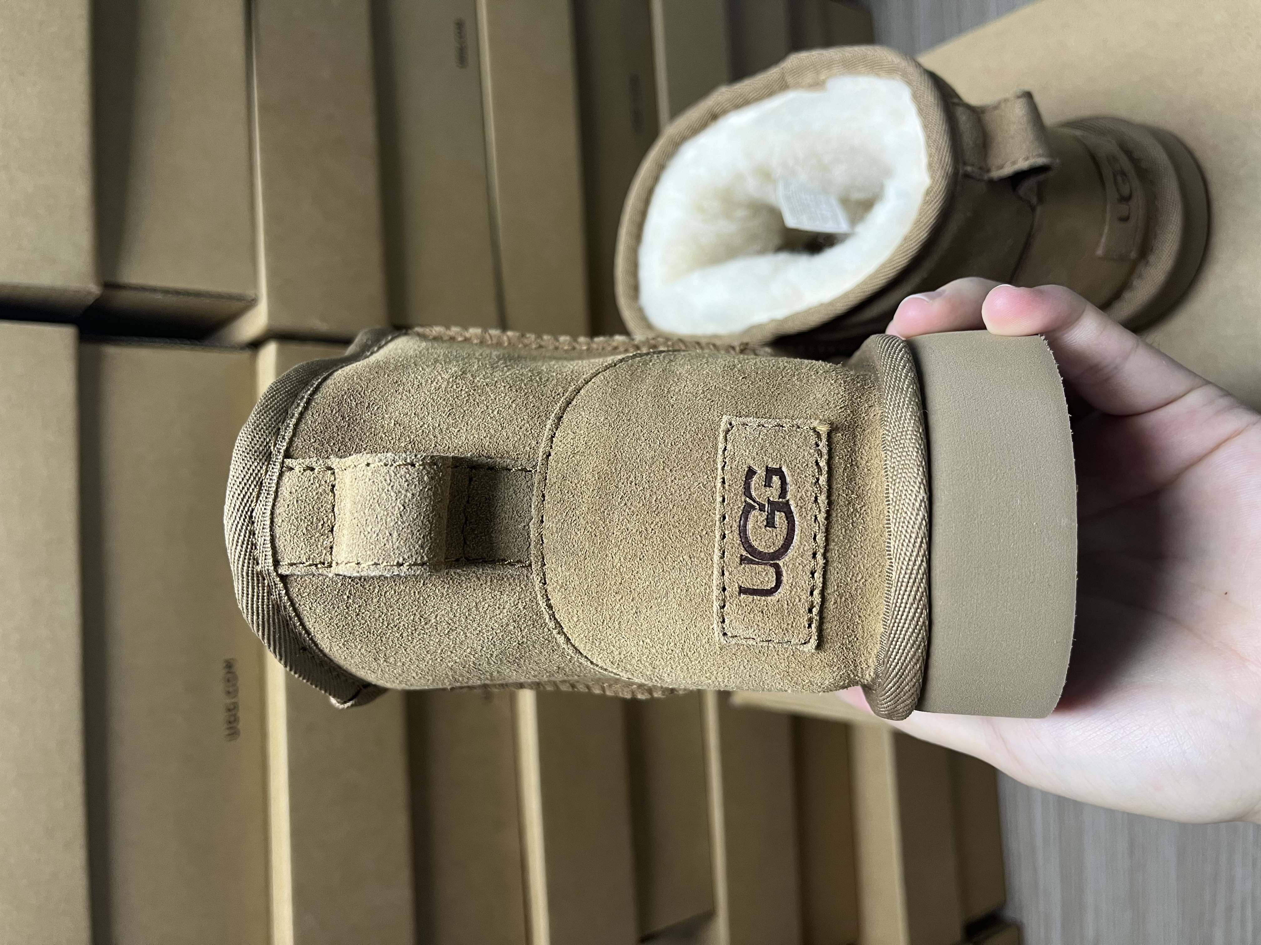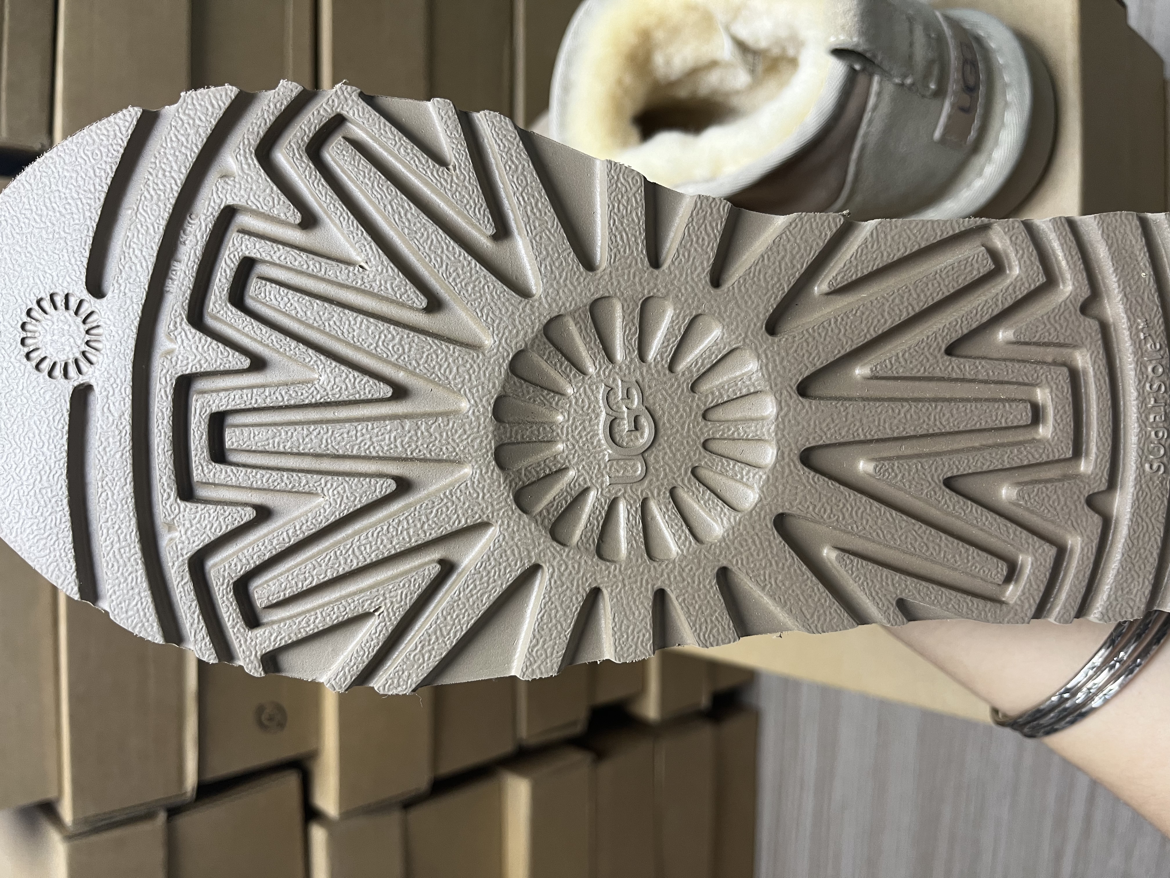 The upper is made of genuine leather and the lining is made of warm wool.