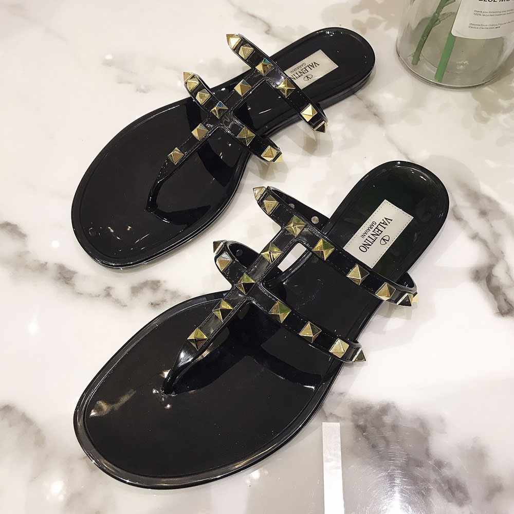 Valentino Rockstud Rubber Flat Flip Flops Slide Sandal